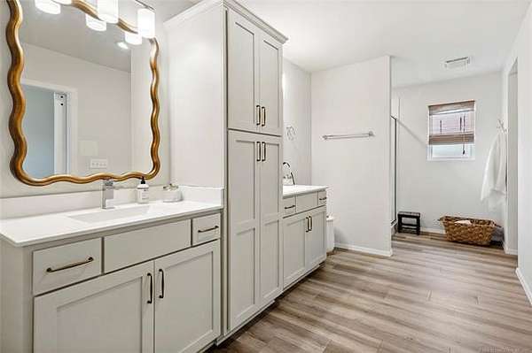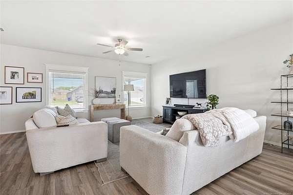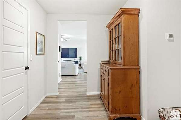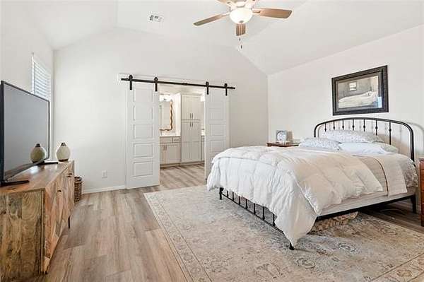 Custom trim around interior windows adds a nice touch of character! Granite countertops & pretty LVP flooring throughout. Primary BR has a 10ft vaulted ceiling & nice barn doors that open up to the huge ensuite bath with dbl sinks, storage cabinets, marble shower & large walk-in closet. Brand new fan in secondary bedroom & both have walk-in closets. Enjoy your mornings & evenings on one of the TWO large covered patio/porches. So nice! Great neighborhood conveniently located close enough to all your daily needs & easy access to Highways 169 & 75. Check out the 2 ponds, nature reserve with walking trails & the neighborhood pool around the corner.