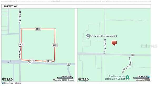 South on US 301 from Belleview or Ocala. Turn left onto CR 42. Property is on left at corner of SR 42 and SE 73rd Ave. Just past big St. Marks Catholic Church at 7081 SE Hwy 42, Summerfield, FL 34491. Address on this listing is for general location purpose subject to future building permit. No address on vacant land. This is one of the last large acreage on Hwy 42 across from The Villages and before Orange Blossom Hills with high new construction and demand.