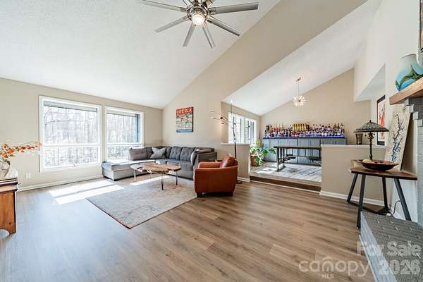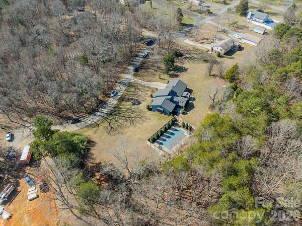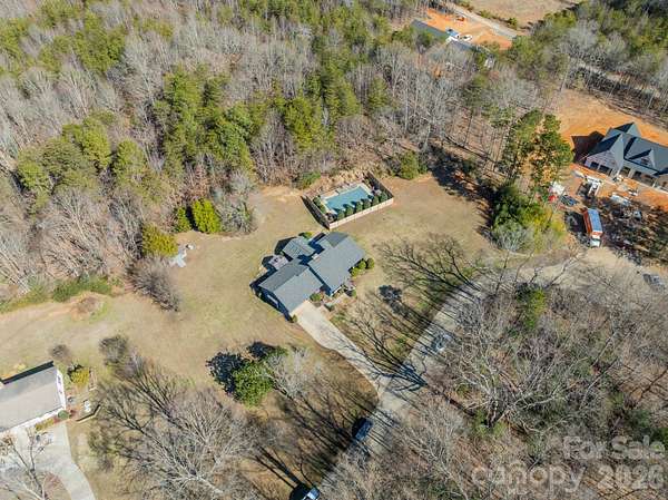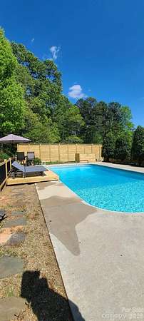 One you don't want to miss. A true one-of-a-kind oasis tucked away on 1.5 acres of pristine, landscaped privacy. This property feels like your own secluded retreat while still being perfectly positioned for convenience and lifestyle. Inside, natural light pours through large casement windows and skylights, accenting vaulted ceilings and striking architectural lines. Offering 3 bedrooms, 2.5 baths, and over 2,100 square feet, the home features all new flooring, generous closets, a functional mudroom, and an oversized two-car garage built for storage with expansive pull-down attic space above. A separate storage shed provides additional room for tools and lawn equipment. The backyard showcases an in-ground saltwater pool with generator, and three deck areas designed for effortless entertaining. Major upgrades include a new roof (2023), all new interior doors, and professional paint throughout (2024). Ideally located 25 minutes to Charlotte Douglas Airport and Uptown, 20 minutes to I-40, and close to Mountain Creek Park and Lake Norman State Park for pickleball, mountain biking, and outdoor recreation.