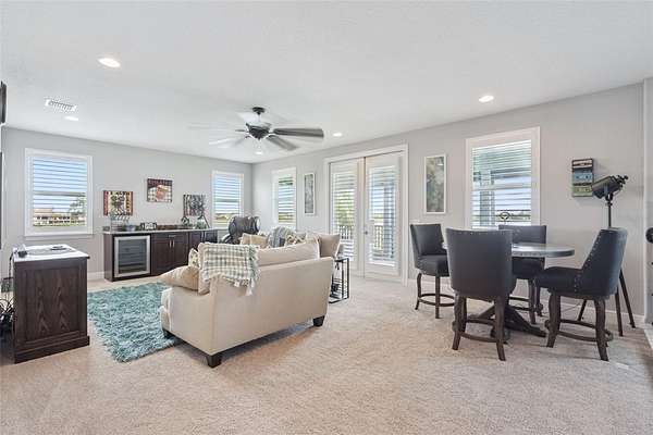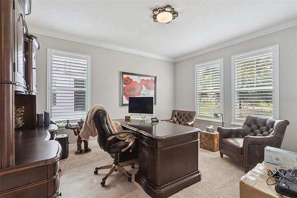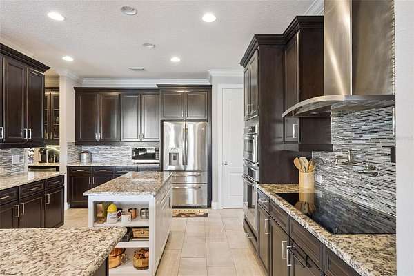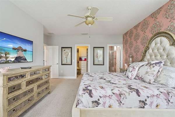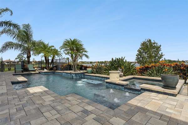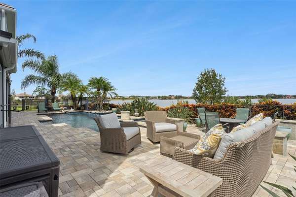 Back on the market - buyer could not secure financing. Furniture has been removed. Welcome to your private paradise at 7417 Lake Albert Drive, where stunning sunrises and serene waterfront living await you. Owners have the option to build a dock and enjoy some water sports on this beautiful lake. This exceptional 6-bed, 6.5-bath residence, nestled in the highly sought-after Lake Burden community, offers an unparalleled lifestyle. Imagine waking up to tranquil lake views from your master suite and spending evenings on your patio, the water shimmering as the sun comes up. The home will be sold unfurnished, providing a blank canvas for you to create the home of your dreams (furniture is optional at a price). The backyard is a true oasis, featuring a sparkling pool and spa, a spacious outdoor kitchen, and a grill, all perfectly positioned to maximize your enjoyment of the picturesque scenery. This is more than a home; it's a front-row seat to the beauty of Lake Burden. Beyond your private retreat, the Lake Burden community provides an array of amenities that cater to a vibrant, active lifestyle. Enjoy friendly matches on the tennis courts, take a stroll along the scenic walking paths, or stay fit at the community gym. The neighborhood also features a children's playground, a baseball field, and a pier extending onto the tranquil Lake Burden. The prime location places you just a short drive from Central Florida's world-renowned attractions, including Walt Disney World and Universal Studios, as well as endless options for dining, shopping, and entertainment. This is your chance to own a piece of paradise in a community that offers the perfect blend of luxury, convenience, and natural beauty.