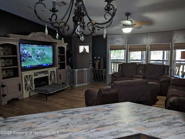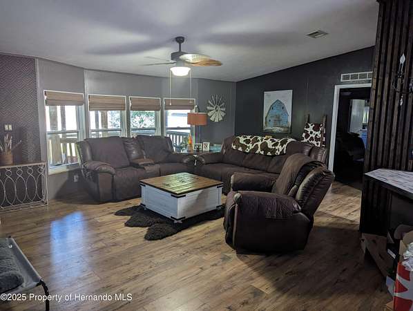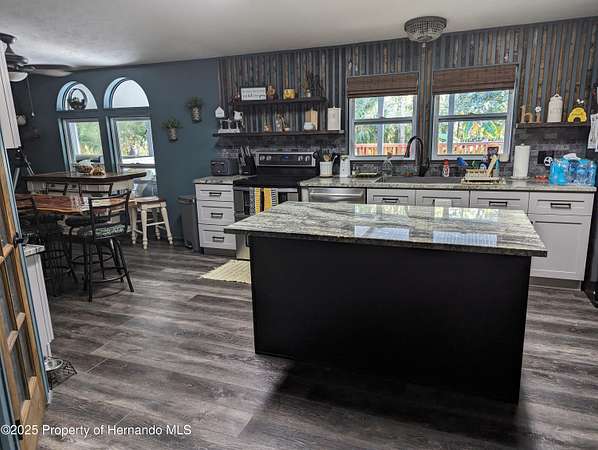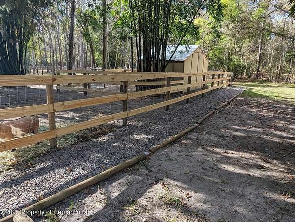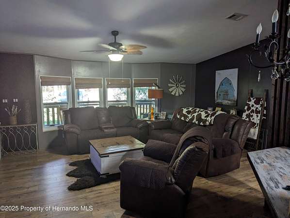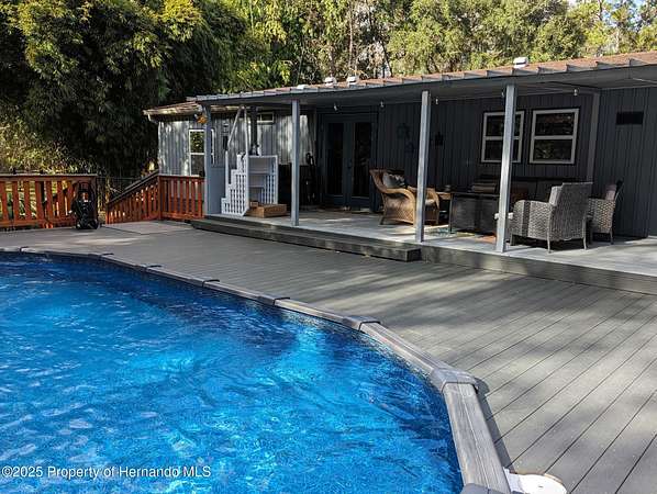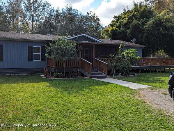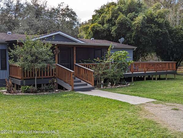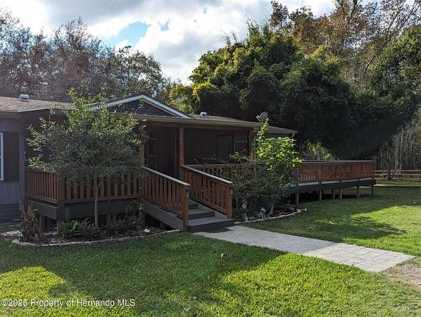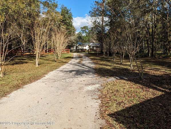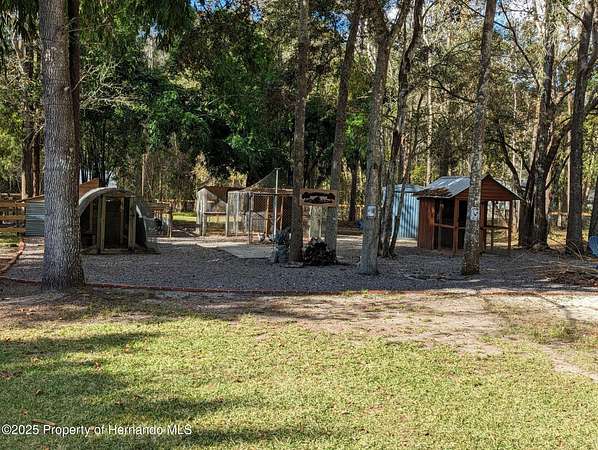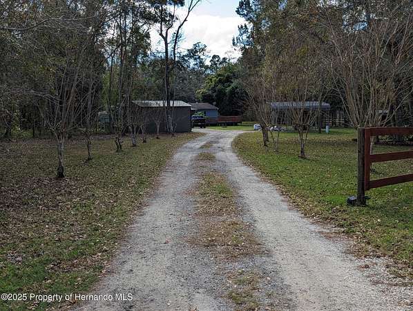 Looking for acreage this is it!! This Beautiful Updated 3 bedroom 2 full bathroom, Pool Home. Located on a Spacious and Serene 6 Acre Parcel!!! This Home Features a Beautiful Paved Walkway, Custom Lighting and Reinforced Decking. Open Floor Plan. So many upgrades to mention. New front porch with trek composite wood. Front porch screened is 20x10 and total front porch is 50ft in front and side is 20ft to enjoy your morning cup of coffee. New, Higher End, water proof Wood Laminate Flooring Throughout the home. Vaulted Ceilings, Custom Designer Interior Paint, Custom Accented Walls, Ceiling Fans, Light Fixtures, and newer windows. Flex room that can be an office or game room. Kitchen Features All Real Wood Custom Kitchen Cabinetry, Beautiful Granite Countertops, Kitchen Isle, Custom Tiled Backsplashe, Additional Cabinetry Storage and Butlers Pantry with Stainless steel appliances. Dining Room Right Off the Kitchen Offers a Great Area for Dining with a Set of French Doors Leading to the Incredible Backyard Pool Area. Larger, Master Suite and a Huge Walk-In Closet. Beautiful En-Suite Offers Newer Cabinets and Granite Countertop Vanity and New Master Shower. Larger 2nd and 3rd Bedrooms Feature Walk-In Closets. Awesome 10 X 46 Underroof Lanai and Expanded New, 30x30 trek /composite Wood Decking around the pool. New Pool 2025, 40x35 back deck around the pool with automatic pool cleaner. New pool pump. Pool Area Offers a Great Area for Entertaining Family and Friends. Roof 2015, A/C 2018, Thermal Windows Throughout, Newer Electrical Panels and Plumbing. New extra large pasture fence. 4 Sheds Offer Plenty of Storage. 2 Pole Barns. Lots of Fenced Area Perfect for Pets. 2 Chicken Coops, Goat Run. Lots of Land to Have Additional Animals and Gardens. New septic drain field. Upgraded to a New, larger well pump. New farm fence around the property with horse fence at entrance. Multiple water connections on property. 2 stall pole barn with fenced outside access on each side. Covered area for dry feeding. Landscaped with beautiful flowers around porch and driveway. Large fenced dog pen. Lawn treated for pests and fertilizer. NO HOA, NO DEED RESTRICTIONS, so bring your RV, camper, boat, ATVs, horses, pets...bring it all! 5-10 Minutes away from Shopping, Banking, Restaurants and Minutes Away from Historic Downtown Brooksville. This Property Won't Last Long. Schedule Your Showing Today!