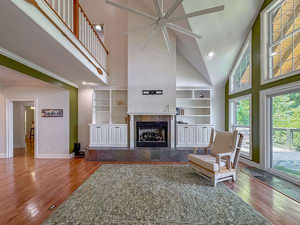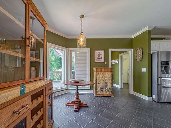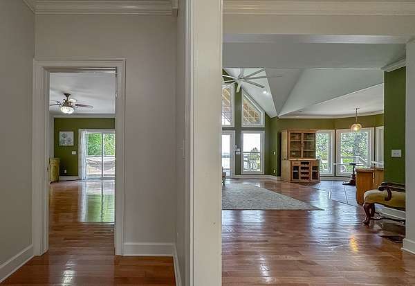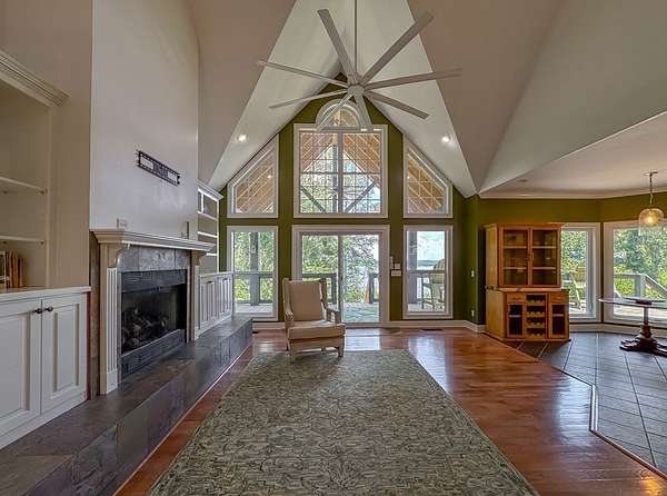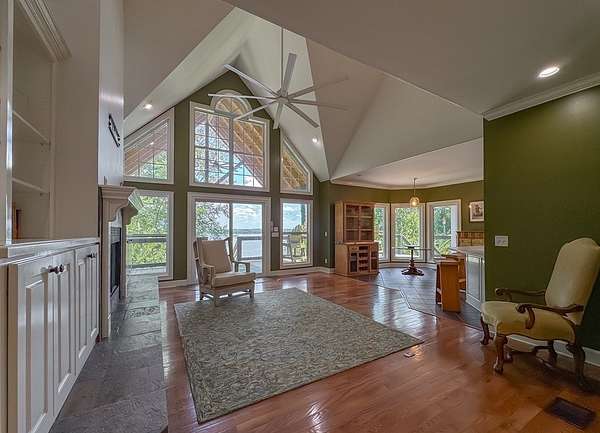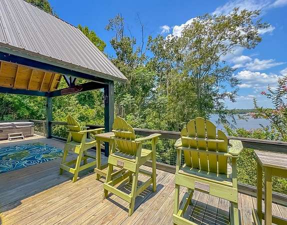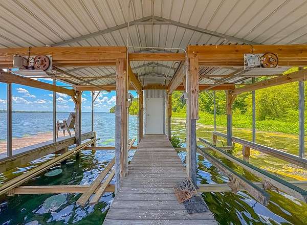 STUNNING LAKEFRONT RETREAT - BREATHTAKING VIEWS & WORLD-CLASS FISHING! Enjoy panoramic views and legendary fishing for bass, bream, crappie, catfish, and stripers--just 1.5 hours from the beautiful beaches of the Forgotten Coast! This custom-built home offers charm and comfort, starting with a welcoming covered porch and relaxing jacuzzi. Inside, you'll find an open-concept living space with lake views from the kitchen and breakfast area. Cozy up by the gas log fireplace in cooler months, and enjoy the elegance of specialty ceilings and a formal dining room adorned with a beautiful chandelier. The spacious primary suite and an additional bedroom or office are located on the main floor. Upstairs features two more bedrooms, a full bath, and a sitting area. Over the oversized double garage is a versatile bonus room. This home is loaded with high-end finishes including crown molding, built-ins, recessed lighting, wide baseboards, and includes all major appliances--even the washer and dryer. Step outside to your private ATV/walking path that leads to an exceptional outdoor entertainment space, bar area, fridge, microwave, sink, tables, and even a ladies' room! Just beyond is a two-slip dock with hydraulic lifts (one for a pontoon), lighting, water, and extra storage. At the front of the property sits a nearly new 20x30 wired metal building with roll-up doors--perfect for storing boats, jet skis, or other equipment. A rare blend of lakefront living with mountain-style charm--this home is truly one of a kind. Call your Realtor today to schedule a private showing!