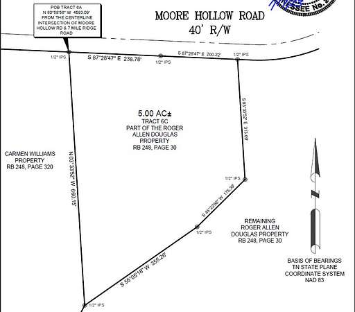 Only a 10 minute drive to Hwy-76/Dover Rd, and from there, an easy drive to Clarksville, Fort Campbell, and Dover. Build on 5 acres in Stewart County with NO BUILDING RESTRICTIONS (Except no mobile or manufactured homes). Cumberland hi-speed internet available. Discover the perfect canvas for your dream home on this serene, 5-acre property nestled off Moore Hollow Rd. Recently surveyed for accuracy, this private parcel offers a spacious, flat build site complemented by a gentle slope, ideal for incorporating a basement into your plans. A septic permit is already in place for a 3-bedroom home, simplifying your path to construction. Additionally, electrical utilities are conveniently located just 80 feet from the build site, ensuring easy connection. Embrace the tranquility and potential of this beautiful setting, perfect for those seeking privacy and the ideal location for their next chapter.
