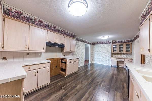 - Beamed Ceilings, Blown/Textured Ceilings, Ceiling Fan(s), Eat-In Kitchen, Tile Counters, Tub Shower Combo