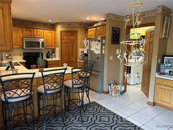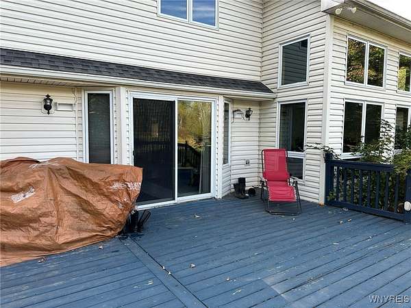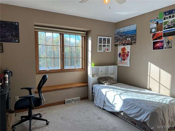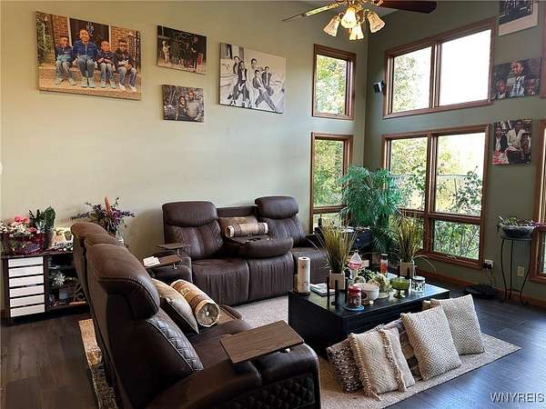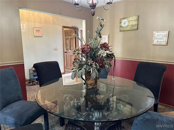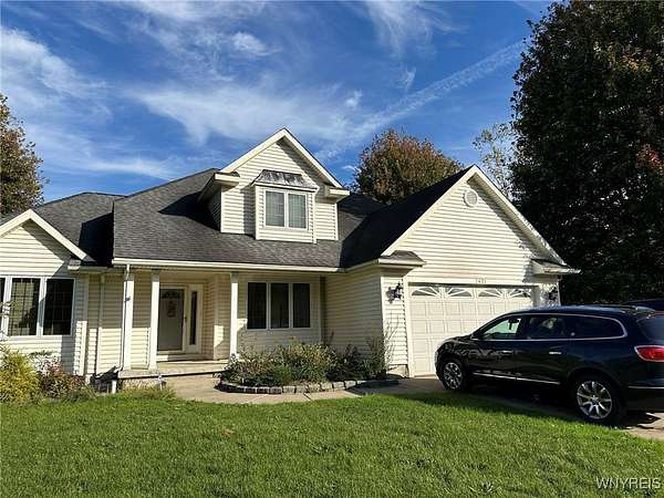 Great Rural 2+ Acre Living! This 4-bedroom, 2 full and 1 half bath 1,999 square foot colonial home sits on 2.01 acres and is located in the Akron Central School District. Built in 1997 this home has modern features such as a two-story foyer as well as a two-story family room. The spacious layout of this home is ideal for entertaining with an eat in kitchen and formal dining room. In addition, the home features a first-floor primary suite with plenty of storage in the walk-in closet. 3 bedrooms and a full bath are upstairs alongside an additional room that is currently being used as rec room space. Enjoy the backyard on the attached deck overlooking the spacious lot. Viewings start immediately. Contracts will be considered as they are received.