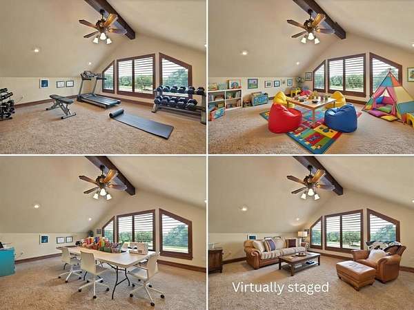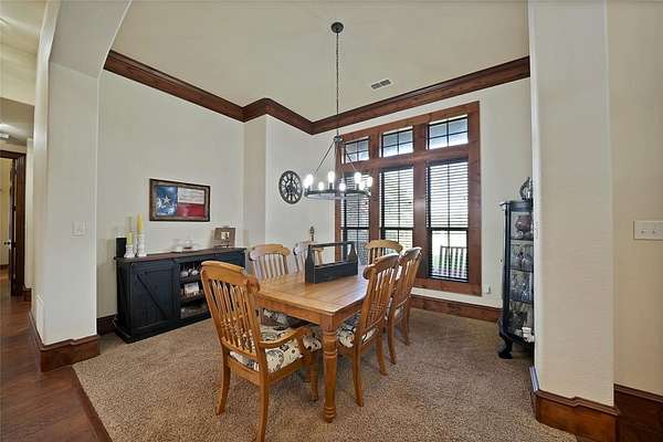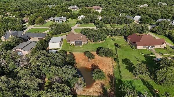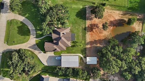 This stunning horse property sits on two acres and is perfectly set up for your equine companions, featuring no-climb horse fencing, pond, a 20 by 30 two stall barn, with a full tack and feed room. You'll also find ample space for all your recreational vehicles and equipment in the 30 by 50 1500 square foot brick and stone toy barn which adds more than 4 additional parking spaces even for large vehicles, trailers, boats, and includes two 16 foot doors and 30 amp RV hookups. There is a safe room or storm shelter located in the attached garage. The home itself boasts a rich mixture of wood and stone, with a stunning vaulted and beamed ceiling in the family room. From the loft living space, which overlooks the family room, you can enjoy a glimpse of Lake Ray Roberts. The gorgeous kitchen is equipped with a large island and recent professional grade appliances, including the refrigerator. There is a separate dry bar with wine rack and beverage refrigerator. The private owner suite features a bath designed to bring the outside in, with a jetted tub, large stone walk-in shower with pebble rock floors. On the other side of the home, you will find 3 additional bedrooms. The 4th bedroom or handsome study offers a turret sitting area, closet and rich wood built-in bookcases. Living here means you can marvel at the sunsets and sunrises, watch the deer and wild turkey, and take advantage of the parks 12 miles of trails for hiking or trail riding, for which the owners have direct, private access. The Timberlake Trails neighborhood also offers fantastic amenities, including a private park entry, a large covered equestrian arena, a pavilion for family gatherings, and a kids jungle gym.