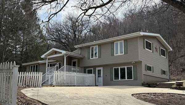 Very nice home tucked away on 24.8 acres at the base of a wooded hillside. Scenic trails wind throughout the property, leading to breathtaking views of the Wisconsin River Valley from the top. This 3-bedroom, 3-bath home offers inviting main-floor living spaces filled with abundant natural light. The spacious kitchen features solid surface countertops, a center island with built-in cooktop, ample cherry cabinetry, and beautiful wood floors. Relax in the Family room with Fireplace then venture out into the 3-season porch on those great days and evenings. Primary bedroom bath with jetted tub, separate tiled shower and heated floor. Lower-Level bedroom with full bath and heated floors. Lower-Level Rec room with Fireplace and exercise room. Heated 30x45 detached garage with workshop. Great property that is just a short drive to Madison.