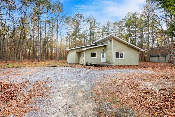 Tucked away on a serene 5-acre wooded lot this ranch-style 3 bedroom, 2 bath home offers privacy, space, and endless potential. Surrounded by mature trees, the property provides a peaceful, country setting while still being in reach of area conveniences and close to the shoreline beaches and Atlantic City. Inside, the home features high ceilings in the living room, creating an open airy feel, complemented by a wood burning fireplace - a cozy focal point ready to be restored to its full charm. Additional highlights include a storage shed for tools or equipment and ample acreage ideal for recreation, or future expansion. This property is a fixer-upper, presenting a fantastic opportunity for buyers looking to renovate, customize, or invest in a private retreat with strong upside. Whether you're seeking a peaceful homestead, renovation project, or investment opptunity, this property is a rare chance to own acreage in Southern New Jersey with room to make it your own. Offered for sale strictly AS IS. Buyer responsible for all costs & inspections related to Lender certifications, Certificate of Occupancy, etc.