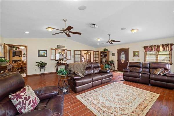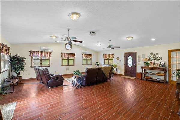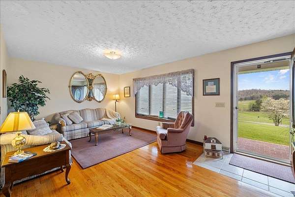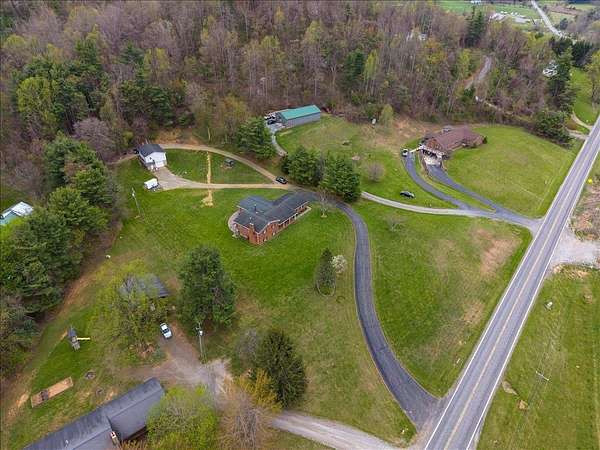 Location, charm, and space — this Rt. 221 property delivers all three. Situated just 30 minutes from Roanoke and 20 minutes from the Town of Floyd, this 1987-built home was expanded in 2013 with a 624 sq ft great room addition that serves as the ultimate entertainment space, complete with a projector and screen that convey. The kitchen features custom-made solid wood cabinets with crown molding and a new dishwasher, while hardwood floors add warmth throughout. Outside, enjoy excellent road frontage, a beautiful front porch view, paved sidewalks, a patio area, and a paved driveway. Flat & spacious backyard. Updated mechanicals include an oil furnace (2012) and heat pump (2016), and the property is served by a new well. The property also boasts a 1526 sq ft two-level wood shop. Don't let this one pass you by.