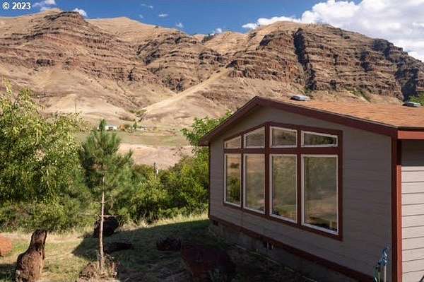 Imnaha Canyon Country at its best! Enjoy this 2 bed 2 bath manufactured home on 17.86 acres. The property has easement access to Basin Creek and Grizzly Ridge for foot and horse traffic leading to a remote and wild section of the Snake River Game Unit. It is also in the Chesnimuns Game Unit allowing for recreation and hunting opportunities. The property borders an 80 acre BLM Parcel to the north and the massive Zumwalt Preserve to the west meaning the view will never be obstructed by development. Just down the road is the public access to the river at the bridge for fishing or swimming. From the property, only a mile down the road is where the pavement ends and the Hells Canyon recreation area begins. Ride a recreational vehicle all the way to Dug Bar from the property. Enjoy high diversity of wildlife: Bighorn Sheep, Elk, and Mule Deer are commonly seen moving through the property to access the river. Eagles and falcons nest in the cliffs on the property. The private well pulls clean cold water from the Chesnimus Aquifer and has a brand new pump. The property benefits from new underground utilities including an excellent modern septic system and a new electrical power transformer, ensuring fewer power outages. Excellent A/C, forced air and a propane fireplace combined with R40 insulation keeps you warm or cold more efficiently. The house enters the shade during the hottest afternoons of the year and is accessed by a paved road. The house is set on a concrete perimeter foundation and has multiple pioneer apricot trees with plenty of acreage for an orchard or garden. Multiple sites for a shop or barn exist on the property for ease in developing the property for stock animals. Diverse terrain on the property, includes a locust grove, pasture, and multiple canyon rims. This is a 'one of a kind' property that includes all the multiple benefits of Imnaha Canyon Country living. See it today!