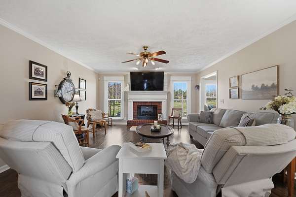 Welcome to this beautifully maintained one-owner, non-smoking home offering space, charm, and privacy! This all-brick two-story features 3 bedrooms, a formal living room, formal dining room, and a versatile bonus room and office on the main floor—perfect for today’s flexible lifestyle. Upgrades throughout, including new PEX plumbing, updated light fixtures, HVAC 3 years old, roof 10 years. Primary suite features his and hers walk-in closets & full bath. Exterior includes level lot with mature landscaping, a concrete drive, and a peaceful backyard with no rear neighbors. Relax or entertain around the fire pit and brick patio pavers, tend to the established garden, or enjoy the shade of the black walnut tree. Additional outdoor features include a swing set, brick mailbox, flood lights, and exterior lamp posts. Additional highlights include built-in bookshelves, alarm system, crawlspace foundation, and the comfort of a lovingly cared-for home where the owner currently resides.