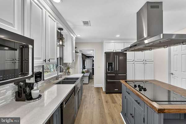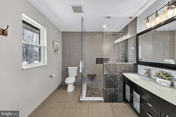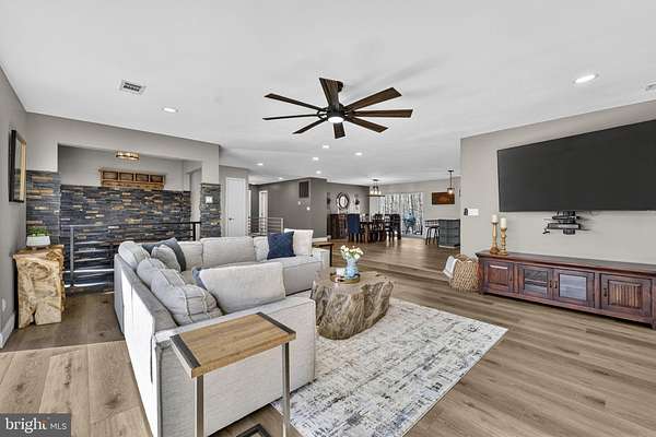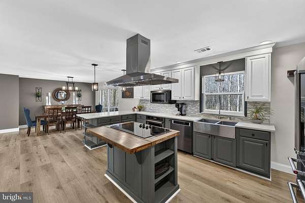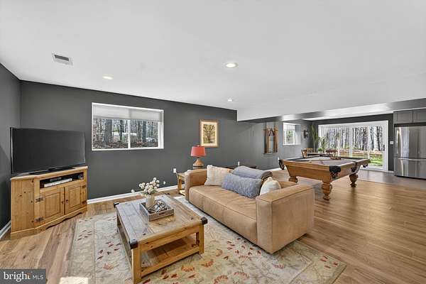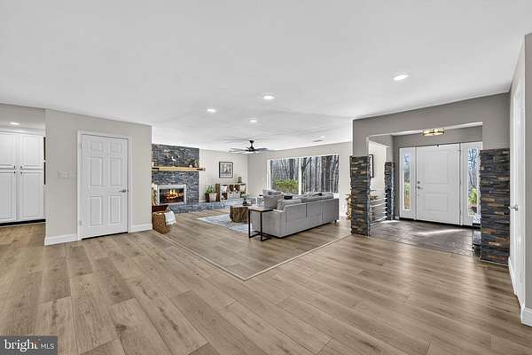 Meticulous 4BR/4BA full brick rambler offering true main level living on 5 private acres with no HOA, situated just minutes from the heart of Clifton with convenient access to restaurants, shopping, schools, and major commuter routes. A brand new paved driveway ('25) leads you through the front portion of the property, starting at an expansive open field that's perfect for recreation, horses, or a variety of outdoor uses, along with a fenced garden area ('20), then continuing into a wooded setting where the home is privately nestled among mature trees with park-like views in every direction. The home features an architectural shingle roof and a 2-car garage, while the backyard retreat is set up for both relaxing and entertaining, complete with a spacious open-air deck and a separate patio with a built-in firepit and bench seating, wood storage, and a large shed ('17). A newer front paver walkway ('17) leads to an inviting foyer with stone flooring and double coat closets, opening to an open, airy floor plan filled with natural light and treed views from every window, along with brand new LVP flooring ('25) throughout the Dining and Living Rooms, and Gourmet Kitchen. The Living Room showcases floor-to-ceiling picture windows and a stone wood-burning fireplace with a reclaimed wood mantel ('16), flowing into the Dining Room with an updated light fixture and new sliding glass door ('25) to the deck, and into the Chef's Delight Kitchen featuring 42" refreshed cabinetry with upgraded hardware, quartz countertops, decorative tile backsplash, barstool overhang with pendant lighting, KitchenAid black stainless appliances ('22), and excellent storage options including a large walk-in pantry and additional built-in pantry cabinets. Just off the Gourmet Kitchen, the renovated Laundry/Mud Room ('25) includes travertine tile flooring, new cabinetry, a utility sink, washer/dryer ('15), and access to the finished 2-car garage with epoxy flooring. On the opposite side of the home, the Primary Suite offers LVP flooring, a Sitting Area, dual ceiling fans, new window shades ('25), a wet bar/coffee station, and a spacious walk-in closet with built-in closet organization, along with a beautifully updated spa-like Primary Bath featuring a large walk-in shower ('22), double vanities, and tile flooring. Bedrooms 2 and 3 include LVP flooring, ceiling fans, and spacious closets, with a Hall Bath offering double vanities, tile floor, and a tub/shower with decorative tile surround. The Fully Finished Lower Level with walk-out elevation adds great flexibility with a Rec Room featuring LVP flooring ('24), recessed lighting, and plenty of natural light, along with a new sliding glass door ('25) to the exterior, a 2nd Kitchen with refreshed cabinetry ('25), tile flooring, a Breakfast Area, and full appliance package, plus a Full Bath with walk-in shower and a 4th Bedroom with LVP flooring ('24), ceiling fan, large closets, and its own Ensuite Full Bath, making it a great setup for guests, au pair, in-laws, or potential rental use. TONS OF UPDATES: HVAC ('17), gutters ('21), garage door openers ('22), water heater ('24), chimney liner ('25), windows ('15), water filtration system ('23), pressure tank ('23), attic insulation ('25), sewer ejector pump ('24), septic line/drains ('25), exterior painting ('21), chimney damper ('17), freshly pressure washed brick ('25), stained deck ('23), updated lighting, landscaping, and tree work. Optional membership to the Clifton Betterment Association (CBA) is available for $30/year and includes access to community events and parades. Also, the Bull Run Marina is approximately 2 miles away, with nearby access to Bull Run Occoquan trail and Hemlock park. Seller seasonal photos included.Some exterior photos have been seasonally enhanced.**Home on Private Drive: Appointment Only; No Drive-bys pls.