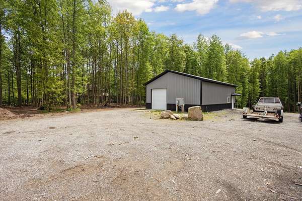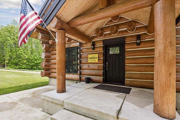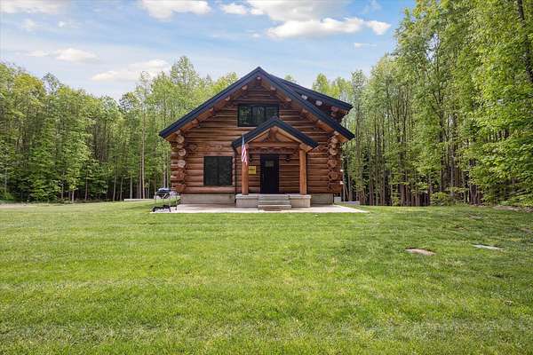 Wow, just amazing! This is a real log cabin home and what a beautiful setting it is! It is like a relaxing vacation every day. This custom log home situated on 5.7 acres in the woods is awesome! This log cabin comes from massive logs brought down from Michigan. Very open concept with vaulted ceilings and a stone fireplace. Anyplace you're in this home offers wonderful views of nature at its best with plenty of Pella windows offering natural lighting. The custom kitchen has natural stone counter tops on all surfaces including the large island. The large custom patio door off of the living room leads to the huge raised deck with views of the wooded property with plenty of wildlife to enjoy. The up stairs loft offers a large bedroom with a full bathroom plus a great office area! Wait to you see the light fixtures which tie into the log home feel! The Amish built 30x40 pole barn is a bonus for those hobbies, & has HVAC (climate controlled), it's own bathroom, and a RV hookup. The location of this home couldn't get any better, being out in nature but at the same time having easy access to I-94, the Toll road, South Shore, LaPorte, Notre Dame, Lake Michigan, and numerous other lakes. Fiberoptic computer line! Bring the rocking chair and relax!