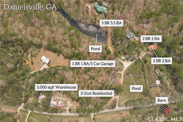 UC Commercial Properties First Team is pleased to present 743 Blacks Creek Church Road in Danielsville, GA-a rare opportunity to acquire approximately 30 acres across three contiguous parcels (743, 737, and 733 Blacks Creek Church Rd | Parcel IDs: 0010 039, 0010 040, and 0010 043). This versatile property includes multiple residential structures and improvements, making it ideal for a variety of uses including multigenerational living, investment, or future development. Improvements include a 5 bed / 5 bath home, a 1 bed / 1 bath, a 2 bed / 1 bath, a 2 bed / 2 bath home, and a 3-unit residential building. Additional features include a barn, a stocked pond, and a 5,000 SF warehouse offering ample space for storage, agricultural operations, or light industrial use. Located in a quiet rural setting just minutes from downtown Danielsville and a short drive to Athens, Commerce, and I-85, this property offers a unique blend of country living and investment potential in growing Northeast Georgia.