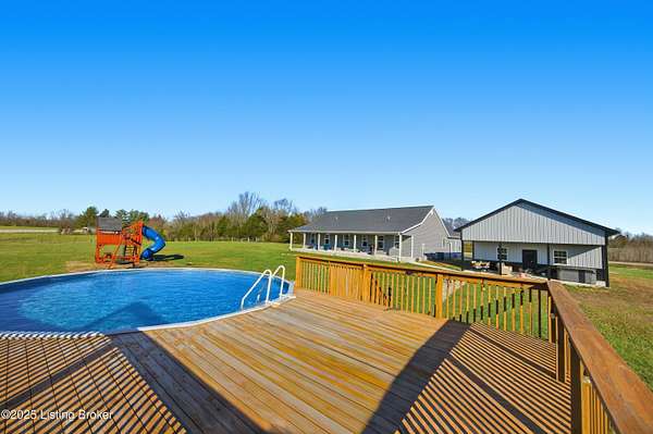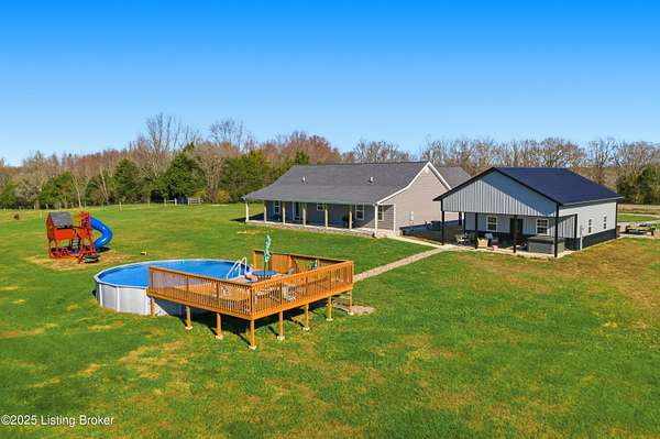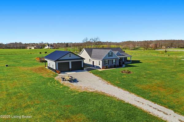 Spec home? Not anymore. This one has been transformed into a truly custom retreat, inside and out. Sitting on 4.3 acres, this property delivers space, style, comfort, and versatility in a way few homes can match. At the center of the home is a spacious, open-concept kitchen, oversized dining area, and an impressive walk-in pantry featuring a built-in coffee bar that feels straight out of a design magazine. It's the perfect gathering space for everyday living or entertaining. The current owners took a great floor plan and made it exceptional. Step inside the newly added foyer that sets the tone for the thoughtful upgrades throughout. The home now features a true fourth bedroom with a walk-in closet, a dedicated office space, and a HUGE primary suite that offers the privacy and comfort everyone is looking for. Outside, the custom touches continue. A newly added two-car detached garage brings extra storage and flexibility, while the show-stopping addition is the 768 sq ft guest house that is complete with 1 bedroom, 1 bath, its own kitchen, living room, and laundry room. Perfect for guests, family or friends! The acreage is usable and fun, featuring room for a chicken coop, a small fenced area ideal for calves or ponies, and an above-ground pool for summertime relaxation. This is truly the best of both worlds: a spec home elevated with custom upgrades and thoughtful additions you won't find anywhere else. Move-in ready, beautifully designed, and packed with bonus features, this one is a rare find.