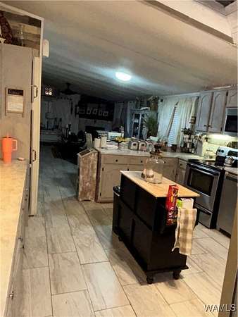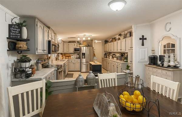 Look! See the great photos of this spacious home with extensive remodeling and with a possible tiny home to boot. This is 3 bedrooms, 2 bath, den with stacked rock fireplace, plus living room, dining and separate laundry. You have 1.6 acres and another possible tiny home/workshop/she/he shed etc and another storage building(small one excluded) New flooring, added cabinets, lighting, painting etc. Come check this out now! Sold as is. Central air not working but heat does work and has other heat and cooling. The 3 Air conditioners and light in den are on smart plugs also ceiling speakers in den and bedroom are Bluetooth and Both bath fans are on Bluetooth to play music through. Fireplace remote . Level lot around house yard with pear tree .