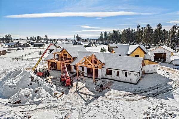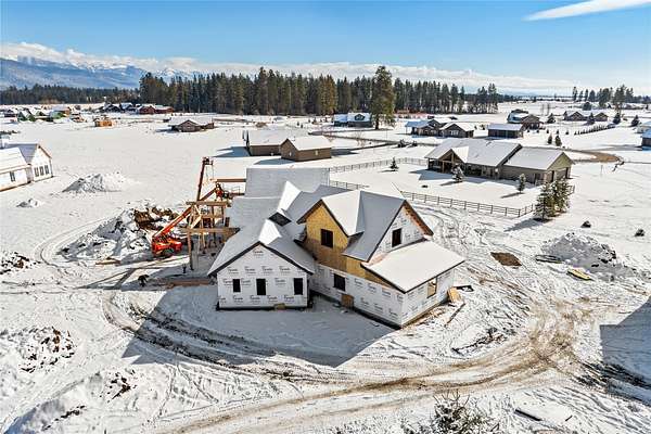 Discover an exceptional new luxury residence currently under construction on 1.62 acres with sweeping views of the Swan Range in the highly sought after Sweetgrass Ranch community. Built by renowned Flathead Valley builder AllHaus, this thoughtfully designed home showcases superior craftsmanship, expansive windows, and a modern mountain aesthetic that captures Montana's natural beauty. Living made easy with a Crestron home automation system. The chef's kitchen will be anchored by an impressive appliance package from Wolf, paired with custom cabinetry, premium finishes and generous gathering space designed for both entertaining and everyday living. The open concept layout is complemented by striking lighting design and large windows that flood the home with natural light including automatic drapes. Every bedroom features its own private ensuite bathroom, offering exceptional comfort and privacy for family and guests alike. Above the three car garage, a versatile guest suite with private bathroom provides the perfect space for visiting guests, a home office, or additional living quarters. Designed with Montana living in mind, the property includes a large shop for storage or workspace, in addition to the attached three car garage. With construction currently underway, buyers have the rare opportunity to secure a brand new luxury home crafted by one of the Flathead Valley's most respected builders. Sweetgrass Ranch community includes a walking trail, blacktop paved roads, fiber optic and community water. Located just minutes to Kalispell, Bigfork and Lakeside. Within easy reach of outdoor recreation, including Glacier National Park, this property offers the ideal balance of modern luxury, craftsmanship, and Montana lifestyle.