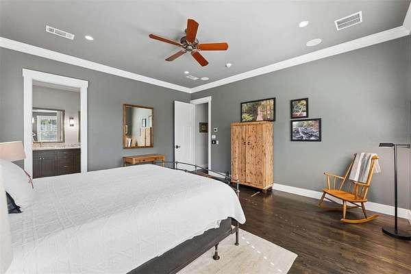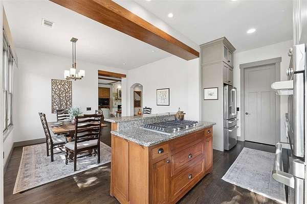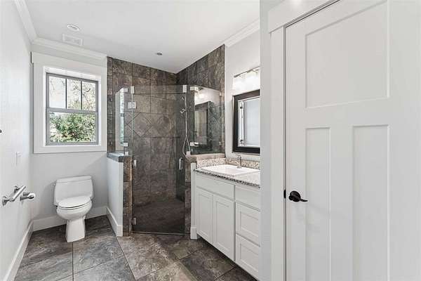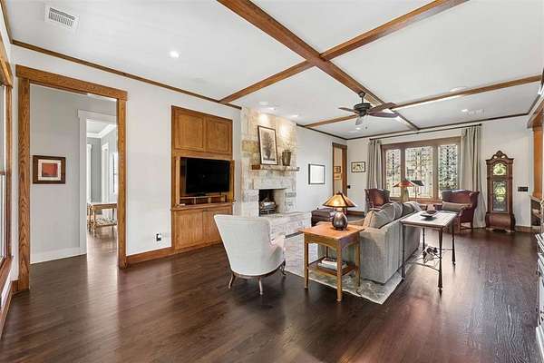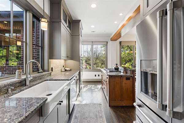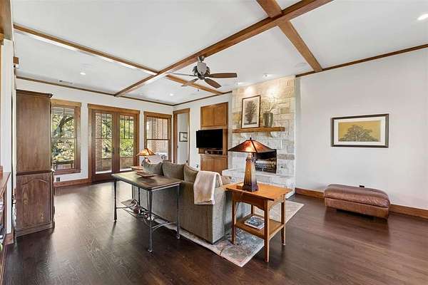 The custom Craftsman-style home showcases timeless character with extensive white oak finishes and solid core doors throughout. Inside the main residence, you’ll find 3 spacious bedrooms and 3 full bathrooms, along with a warm and inviting living area anchored by a stunning stone fireplace.