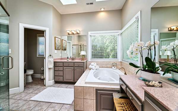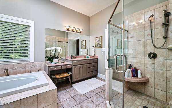 - Bathtub Only, Bookcases, Cathedral Ceiling(s), Ceiling Fan(s), Eat-In Kitchen, Entrance Foyer, Granite Counters, High Ceilings, Pantry, Separate Shower, Shower Only, Smooth Ceilings, Soaking Tub, Tray Ceiling(s), Vaulted Ceiling(s), Walk-In Closet(s), Walk-In Shower