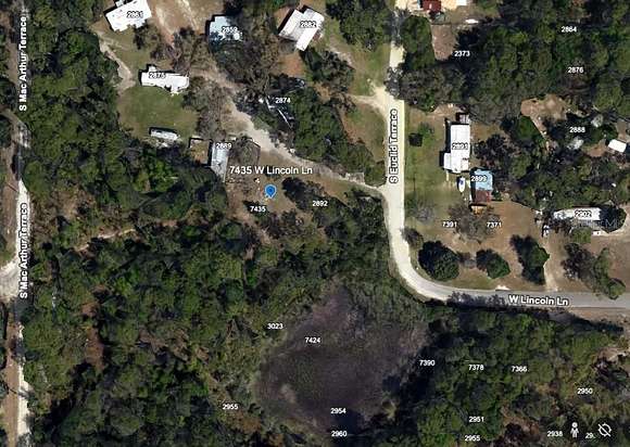 From W. Homosassa Trail, North on S Audubon Terrace, Left at 1st cross street onto W Lincoln Lane and go around the first bend in the road, Turn Left on the first dirt road, Property on Left about 138 feet.