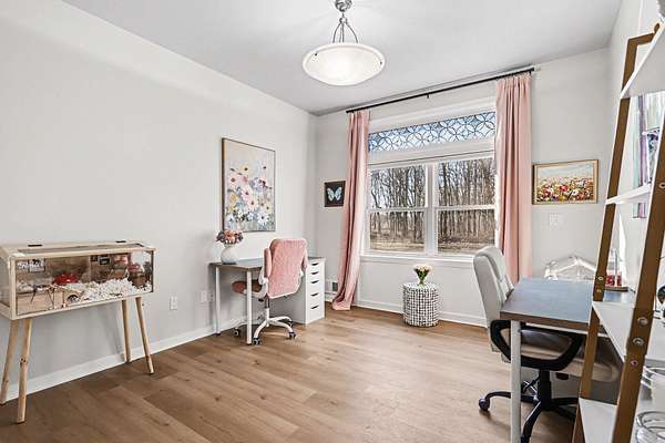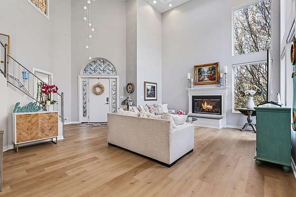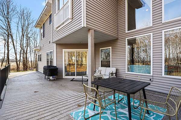 Located on over 8 wooded acres in the Gull Lake School District, this stunning home is accessed by a long, winding driveway offering privacy and scenic surroundings. The home features 5 bedrooms and 3.5 baths, with a main-level bedroom currently used as an office.The entry welcomes you with soaring ceilings and large windows that fill the home with natural light. The living room includes a wood-burning fireplace and opens to the dining area with a slider to a low-maintenance deck overlooking the wooded backyard. The updated kitchen features granite countertops, new stainless steel appliances, a pot filler, updated fixtures, and a reverse osmosis system, along with luxury vinyl plank flooring throughout the main and upper levels. The owner's suite offers a two-way fireplace shared with the jetted tub, a large tiled shower, and a walk-in closet. The finished walk-out lower level includes a rec room, bedroom, full bath, and sliders leading to the backyard.