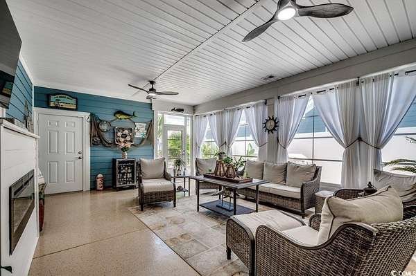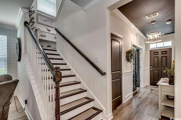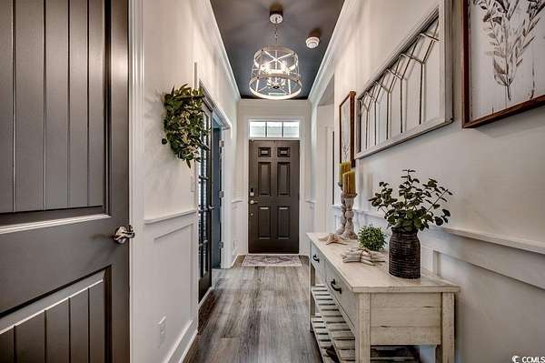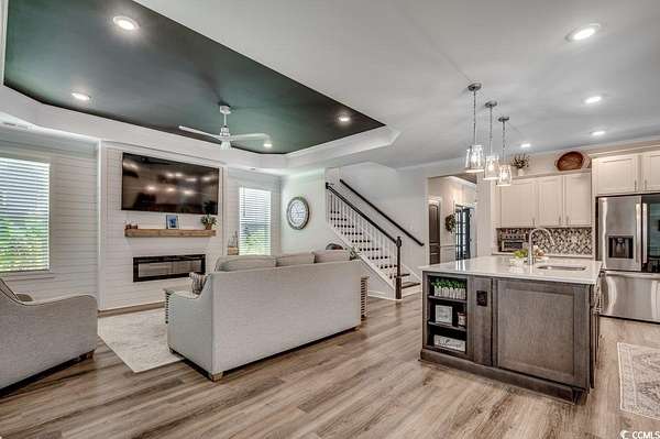 So many upgrades in this gorgeous home in Bridgewater in Little River. This great house shows like a model and offers a nice floor plan including an added large heated and cooled sunroom with EZ breeze windows that acts as den, 4 bedrooms (primary and another bedroom on first floor) plus a study and a loft area, open kitchen, great room, butlers pantry/bar area, large laundry room with cabinets/sink/counter space, lots of storage, and a huge pantry with custom shelving. Upgrades and features include crown molding, custom trim, two beautiful electric fireplaces with shiplap, custom built desk in study, custom paint in every room, upgraded LVP flooring, gorgeous kitchen, large island, high end stainless steel appliances, double oven, tile backsplash, nice fixtures throughout., large primary suite, tray ceilings, double sinks, custom mirrors, tile shower with glass doors, and a large walk in closet, All the upgrades continue outside of this gorgeous home with custom Bahama shutters, curbscaping, tropical landscaping, palm trees, pavers, patio, concrete, outdoor landscape lighting, whole home Generac generator, whole home water filtration system, tankless on demand water heater, 2 1/2 car garage, and an updated alarm system. Great location in the neighborhood, close (but not too close) to the amenities center. Bridgewater has so much to offer including a 5000 square foot clubhouse, state of the art fitness center, resort style pool surrounded by cabanas, huge open area perfect for community events, pickleball court, kayak launch, outdoor grills and cooking area, large and small dog park, and a playground. All this and just a short distance to the Cherry Grove section of North Myrtle Beach.