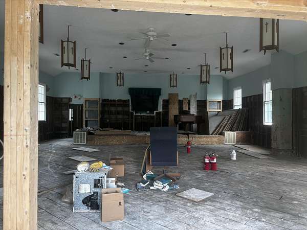 Unique Opportunity - Former Church on Residential Lot! This rare find offers endless potential! Situated on approximately 0.5 acres in a residential zone, this former church building has been stripped to the studs after flooding, providing a clean slate for your vision. Whether you choose to transform it into a custom home, create a unique studio space, or pursue another creative use, the structure's solid bones and spacious interior offer a fantastic starting point. Bring your plans and imagination-opportunities like this don't come around often!