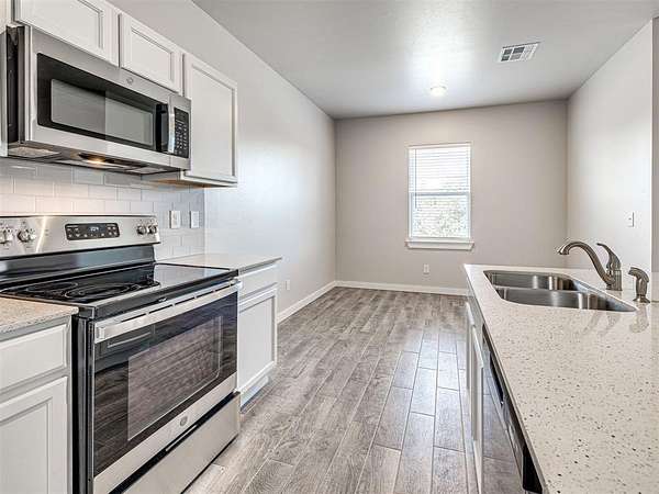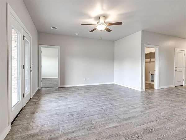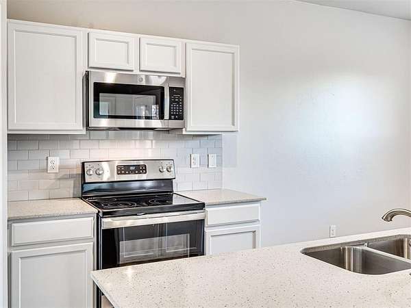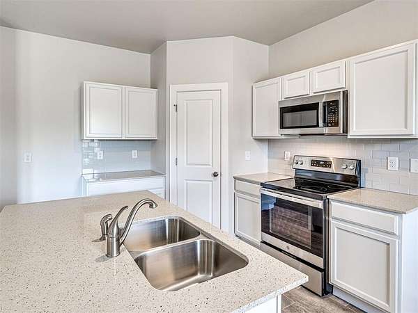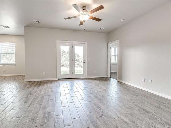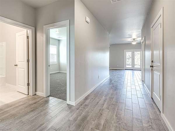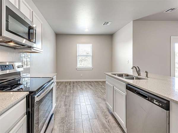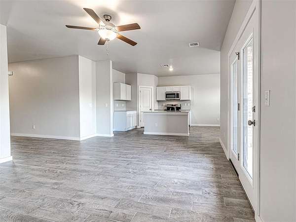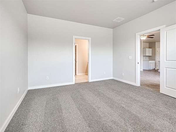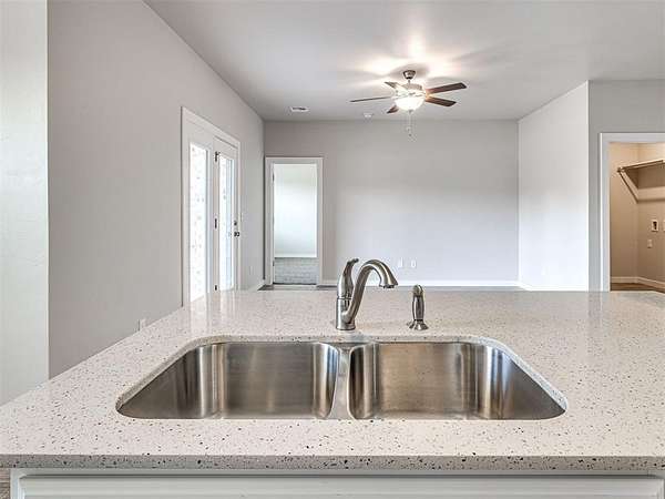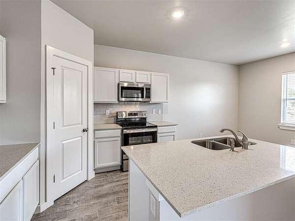 The primary suite offers a private retreat with a walk-in closet that connects directly to the laundry room, plus a sleek ensuite bath with modern finishes. Two additional bedrooms provide flexibility for guests, a home office, or hobbies. Step outside to the covered back patio and imagine relaxing evenings, BBQs, or simply soaking in the peaceful Oklahoma sunsets.
