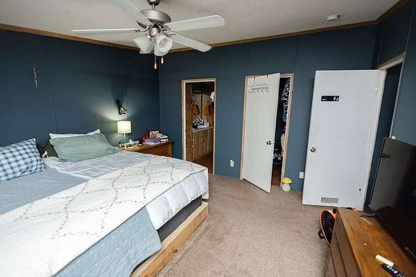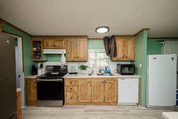 Enjoy quiet country living on 4 acres just outside Trinity, TX. This well-kept 2007 double-wide modular home offers 3 bedrooms, 2 bathrooms, and 1,472 sq/ft with an open living area and large primary suite.