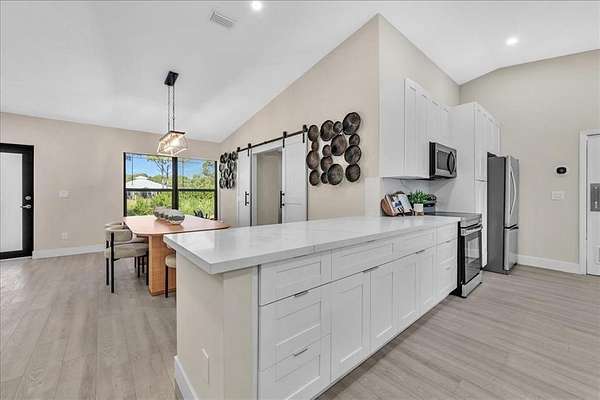 Unbelievable and unique opportunity to own 2.5 acres east of US1 in South Florida, with a completely remodeled & upgraded large, open and bright 5 bedroom 3 bathroom home w/ oversized garage. Home upgrades were all done with PERMITS. Everything is BRAND NEW, including ROOF, IMPACT windows and doors, a spacious modern chef's kitchen with European cabinets, calacatta counters/backsplash, SS appliances, slatted wood accent wall w/ electric fireplace, oversized master bedroom with his and hers closets, maid/in-law quarters on the opposite side of the house, breakfast nook, large laundry/pantry room, and so much more.... Land is cleared around the property and the rest is ready for your imagination: ATV trails, fishing in the pond, add some horses... or garages...