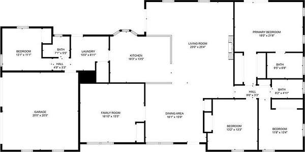 - Bathroom x 3, Bedroom x 5, Laundry, Living Room, Utility Room