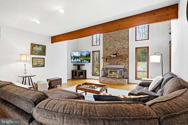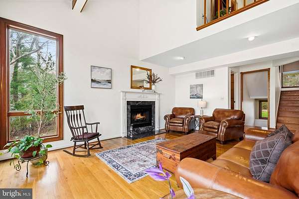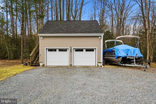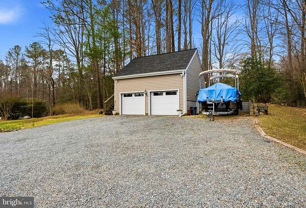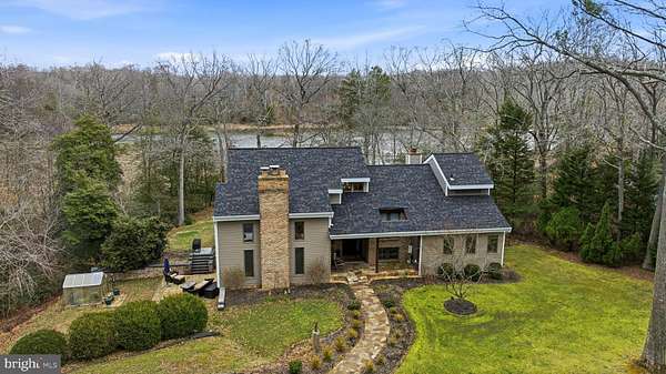 STUNNING WATERFRONT! Set on 2.21 private acres along St. Leonard Creek, this exceptional waterfront home offers 4,468 square feet, 4 bedrooms, 4.5 bathrooms, a detached 2-car garage w/ an unfinished storage space above, and a fully finished basement in a setting that feels private, peaceful, and made for everyday luxury. Watch the numerous Bald Eagles and other wildlife and melt away into this scenic vista's natural beauty! Inside, Anderson windows and doors bring in natural light and frame beautiful views of the water and surrounding trees. The main level is designed for both comfort and entertaining, with spacious gathering areas, warm wood details, and seamless flow from room to room. Upon entry you are greeted by expansive creek/nature views. The oversized main floor half bath is located just to the left. The large sunken living room boasts floor to ceiling windows and a cozy gas fireplace. Adjacent to the living room, the formal dining room features a built-in buffet area with a wine fridge and a glass door with access to the large rear deck. The chef's kitchen is well appointed with luxury appliances including a double wall oven, side by side refrigerator, built-in microwave, glass induction cooktop, bosch dishwasher and a warming drawer. The solid wood cabinets, quartz countertops, and custom tile backsplash add to the elegance of the space. Just off the kitchen, the family room features a wood stove insert with a 2-story brick facade, creating a cozy and inviting space to relax. The main level primary suite offers the ease of first-floor living along with a spacious bath featuring heated travertine tile floors and a jetted soaking tub, creating a true retreat. Upstairs, the home's spacious feel continues with two generously sized bedrooms, including a private upper-level primary-style suite with its own sitting area which overlooks the family room. The upper level primary bedrooms features include a walk-in closet, a private balcony and an en-suite bath which boasts a double sink vanity, ceramic tile flooring, a soaking tub, and a separate tiled shower. The hall bath, which serves the additional oversized bedroom on this floor, includes granite countertops and a skylight, bringing in soft natural light and adding to the airy feel of the upper level. The lower level expands the home's flexibility even further with a large recreation room or possible 4th bedroom/in-law suite, outdoor access to a wonderful patio area, a wood stove insert, a full bath, and a laundry area with storage space-ideal for entertaining, guests, hobbies, or everyday convenience. Outside, the property truly shines. A large Trex deck, accessible from both the kitchen and dining room, overlooks the private backyard and the gorgeous natural setting of St. Leonard Creek , creating the perfect place for outdoor dining, morning coffee, or evenings by the water. The detached two-car garage with an unfinished space above adds even more versatility. With water views, generous indoor and outdoor living areas, and a peaceful setting on St. Leonard Creek, this is a rare opportunity to enjoy the kind of waterfront lifestyle that feels like a getaway every day. Set up a showing ASAP so you don't miss this opportunity!