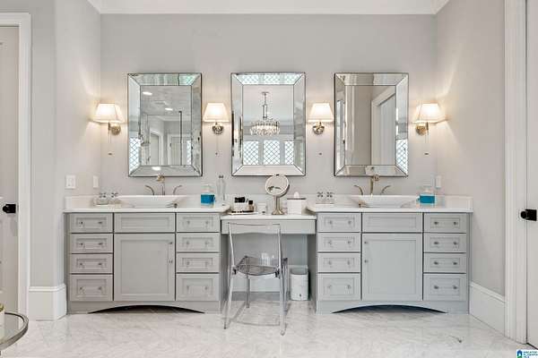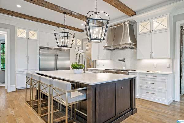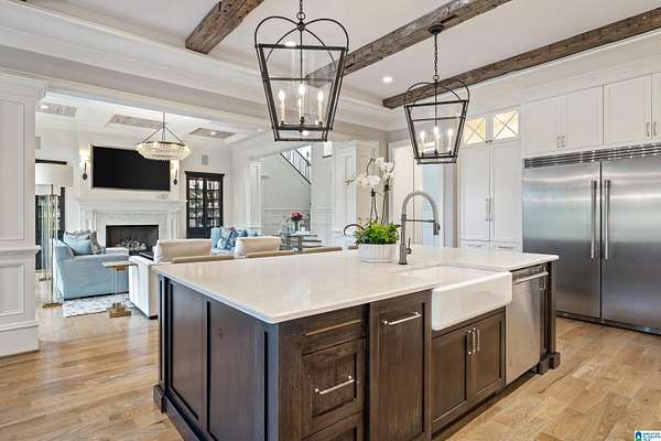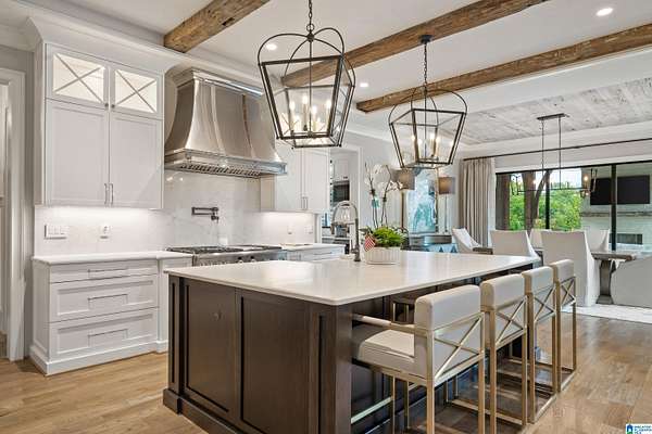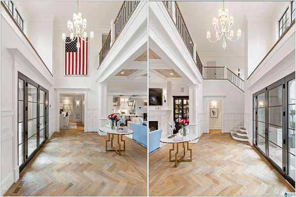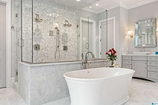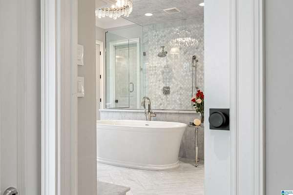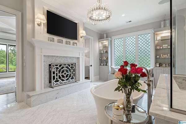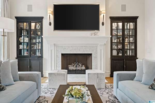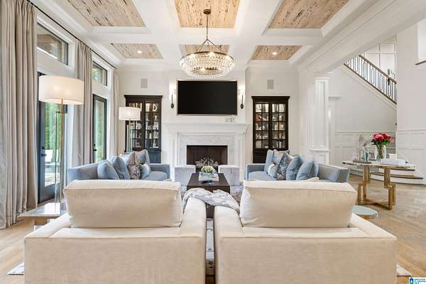 Timeless design meets resort-style living in this exceptional home in gated Old Overton.Walls of glass frame views of the pool, seamlessly blending indoor & outdoor spaces. Living & dining open to the chef's kitchen, featuring premium appliances, large island with seating & a spacious family dining area perfect for gatherings. Luxurious main-level master suite is a true sanctuary with fireplace, spa-inspired bath, oversized walk-in closet, & direct access to the pool. Family rm /library with beamed ceiling & fireplace + private bath could serve as secondary main level master. Upstairs offers 3 en-suite bedrooms, family room with wet bar, exercise/flex room, and a hidden retreat--ideal as a quiet getaway. The lower level features a media/fitness room, bath & 4-car garage. With an additional 2-car garage on the main level, there's room for 6 vehicles in total. A rare opportunity in one of Birmingham's most prestigious gated communities. Private showings by appointment only.