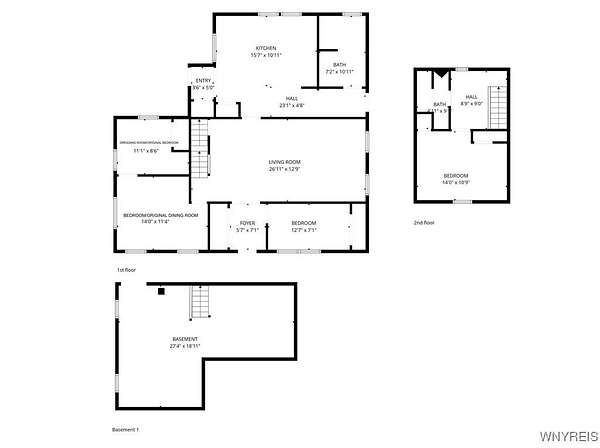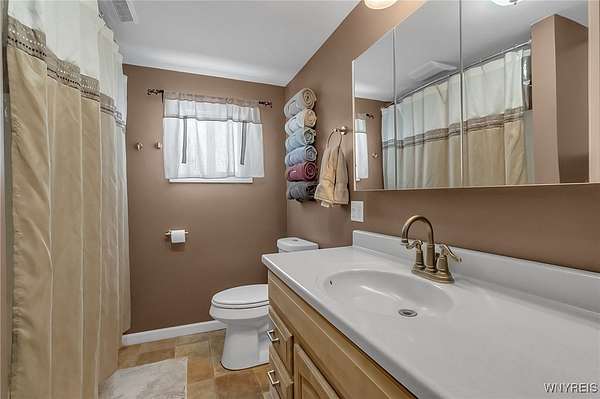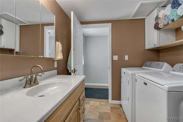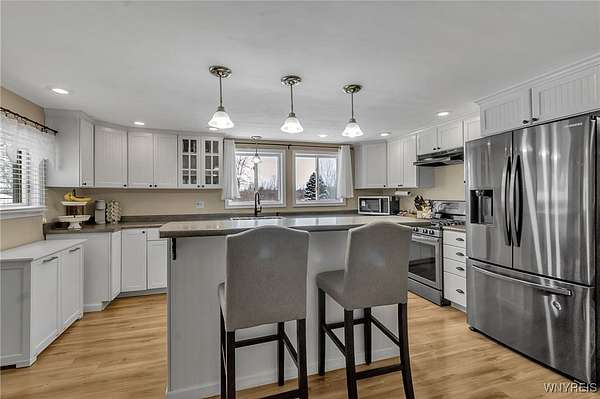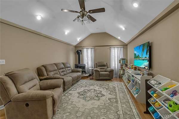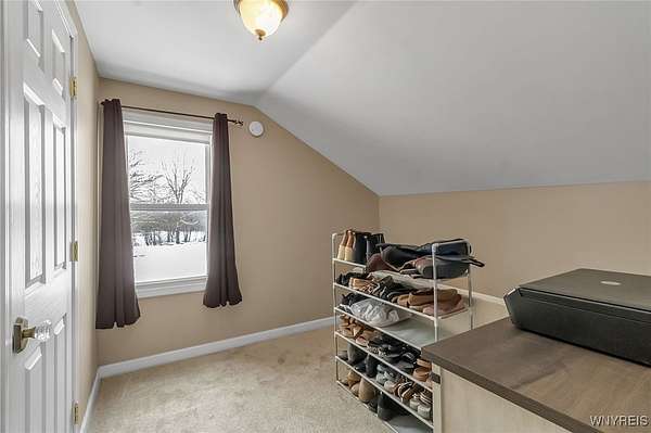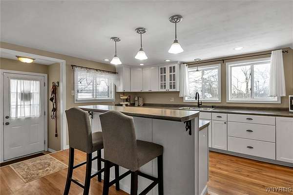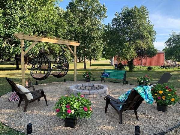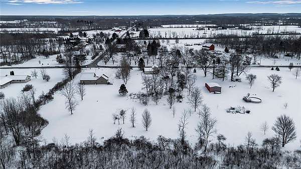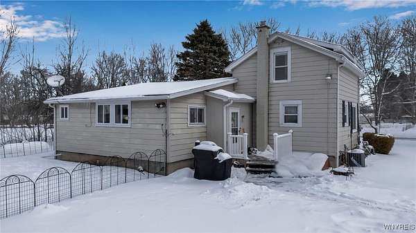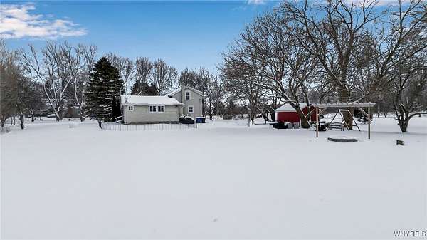 Set on a parklike 1.55-acre lot in the highly rated Akron School District, this unique three-bedroom, two-bath home offers space, flexibility, and a layout that truly lives like a ranch. The majority of the home's square footage is on the main level, featuring multiple first-floor bedrooms, a full bath, and convenient first-floor laundry - ideal for everyday living. The second floor functions as its own private primary suite, complete with a bedroom featuring double closets, and a full bath-perfect for added privacy or a quiet retreat. At the heart of the home is a large, updated kitchen with abundant storage and counter space, highlighted by a center island with breakfast bar seating. A former formal dining room has been thoughtfully converted into a generous bedroom with an adjoining dressing room created from one of the original bedrooms, but the adjacent room would also make a fabulous office or nursery as well. These spaces can easily be returned to their original dining and bedroom configuration if desired. The vaulted living room offers an inviting gathering space, anchored by a wood-burning stove. Downstairs, the basement provides excellent storage with both interior access and Bilco doors for added convenience. Outside, the backyard is a true summer oasis-lush, private, and perfect for entertaining, with a beautiful fire pit area to enjoy long evenings. Two large sheds sit on the property; red shed conveys, and the second is negotiable. Additional highlights include the convenience provided by a new blacktop driveway completed in 2025 and a municipal water connection, a true bonus for rural living. A rare combination of land, layout, and location; this one is truly something special. Showings begin Tuesday, 1/27 at 8:30 AM. Open Houses: - Wednesday, 1/28 from 5:00-7:00 PM - Saturday, 1/31 from 10:00 AM-12:00 PM - Sunday, 2/1 from 10:00 AM-12:00 PM