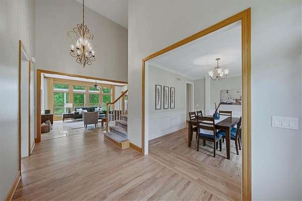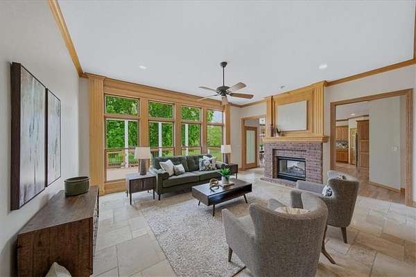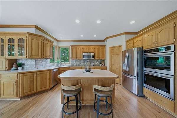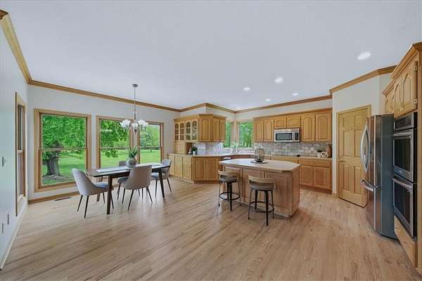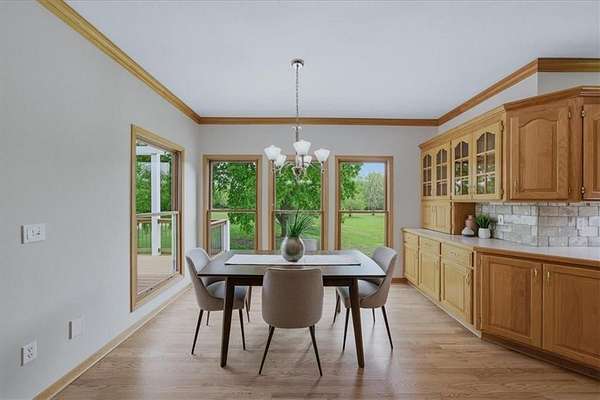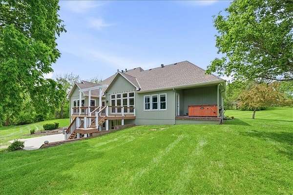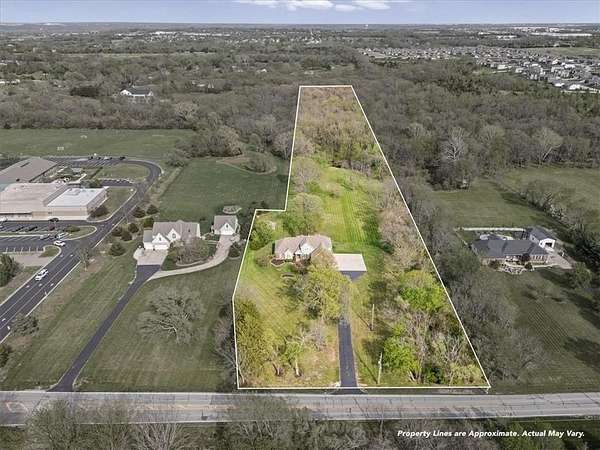 If you've been looking for space, privacy, and a custom home that offers room to truly live, this 5-bedroom, 6 bath (4 full, 2 half), 4000+ square foot property on over 6 acres delivers all that in a desirable rural Shawnee location. Surrounded by mature trees and streams, fishing with your kids can be done right at home in your own backyard. The park-like setting is peaceful and tucked away while still offering all the space you need both inside and out. The main level features a primary suite and an additional bedroom with full bath and walk-in closet. The primary suite offers a private, covered deck, large private bathroom, and walk-in closet. Just off the entry, a welcoming front living room creates a spacious place to gather, highlighted by a striking see-through fireplace that connects to the kitchen-bringing warmth and character to both spaces while still maintaining defined living areas. The kitchen is generously sized and designed to be the heart of the home, with plenty of room to cook, host, and spend time together. A formal dining room adds a traditional space for meals, holidays, and entertaining. Upstairs, you'll find three additional bedrooms, two full bathrooms, plus a bonus room off one of the bedrooms. The finished basement expands your living space even further, ideal for movie nights, game days, or hosting guests. Step outside to a large deck overlooking the tree-lined acreage, perfect for morning coffee, evening gatherings, or simply taking in the quiet setting. You will love the oversized three-car garage on the main level, along with the additional John Deere garage with rear walkout entry-ideal for a workshop, lawn equipment, golf cart, or side-by-side. A 24x36 concrete pad awaits your custom-designed outbuilding. This ideally located home offers a rare combination of acreage, trees, open space, and privacy, just minutes from K-7, Shawnee Mission Parkway, restaurants, and within the award-winning DeSoto School District.