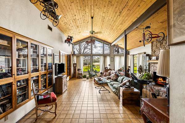 The highlights of the property's headquarters are a 4,300 sq. ft. main home with four bedrooms and two bathrooms including a large chef's kitchen, spacious vaulted living room with floor-to-ceiling windows and fireplace with rock mantle. An inground pool off the back deck offers a refreshing escape on warm days. Two additional homes are available for guests or property staff. A distinctive red barn, complete with corrals and a squeeze chute, provides essential infrastructure for livestock handling. A shop with a large roll-up door, garage/office, equipment shed, and various outbuildings provide ample space for necessary equipment and tools.
