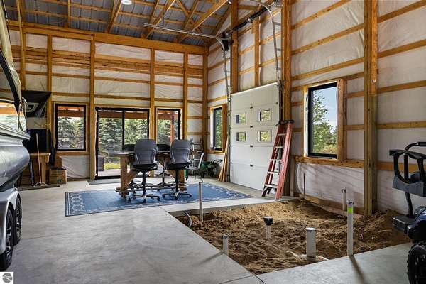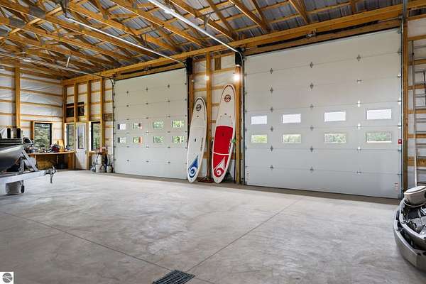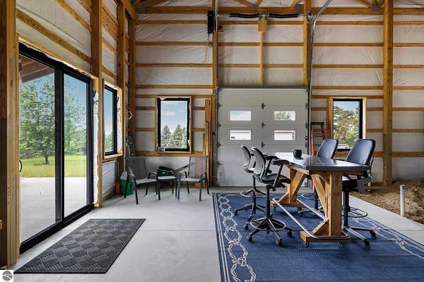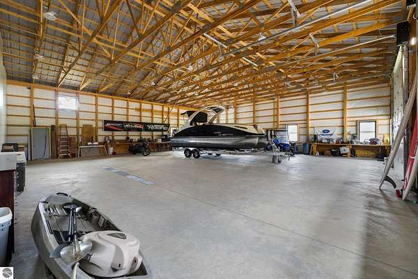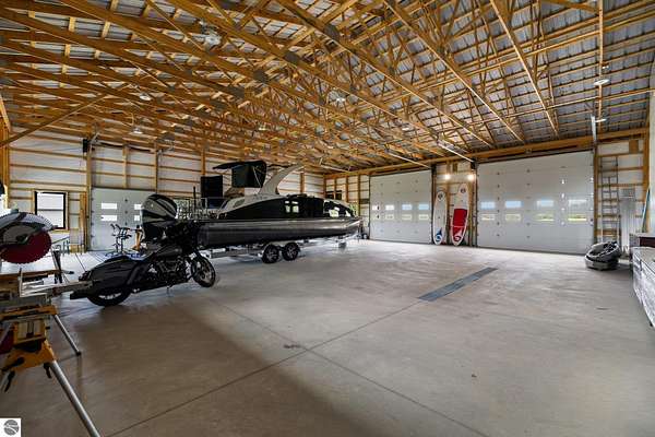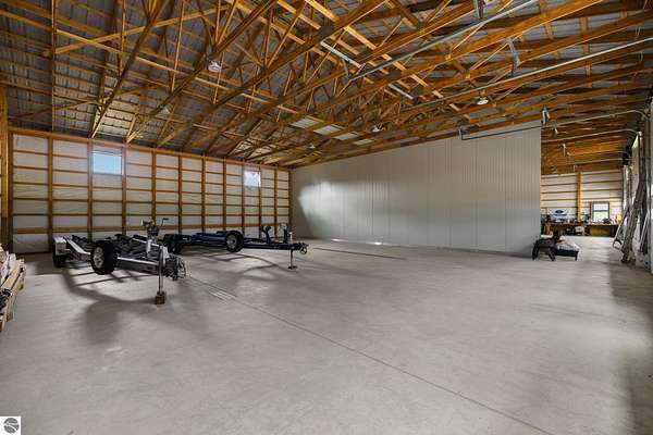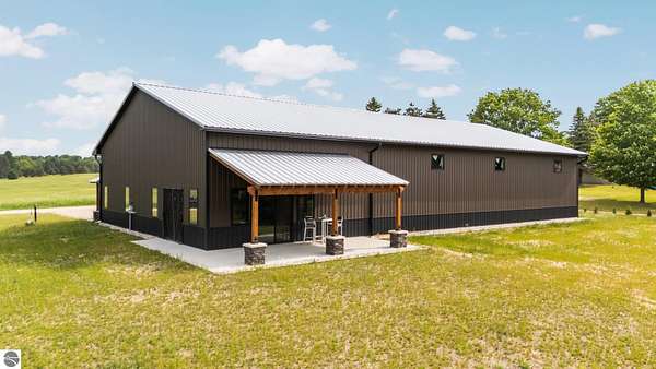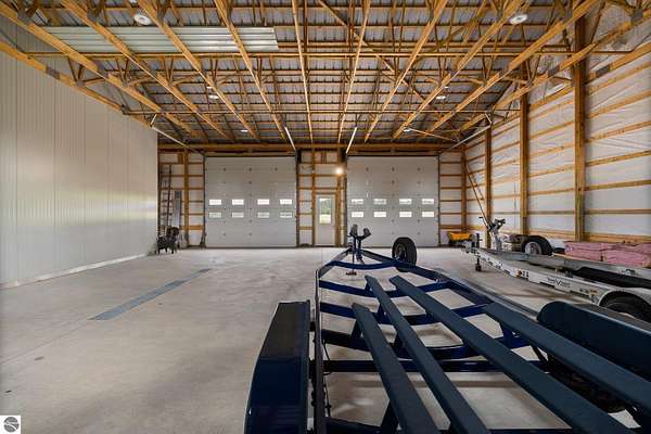 Est $3,787/moImagine owning a 5,000 sq. ft. pole barn (50’ x 100’) designed for versatility, featuring four 14’ x 14’ overhead doors, 16’ ceilings, and sloped floor drains in each bay. This space is perfect for storing boats, trailers, campers, and vehicles. The southwest side is already plumbed for a future bathroom and laundry area, offering excellent potential to create a living area, especially with the well and septic already in place. Located just one mile from the Clam Lake boat launch, it offers easy access to the entire lower Chain of Lakes. The covered porch is the perfect outdoor retreat to unwind after a day on the water or the golf course. Short term rentals are allowed, making this a versatile second home or investment opportunity.