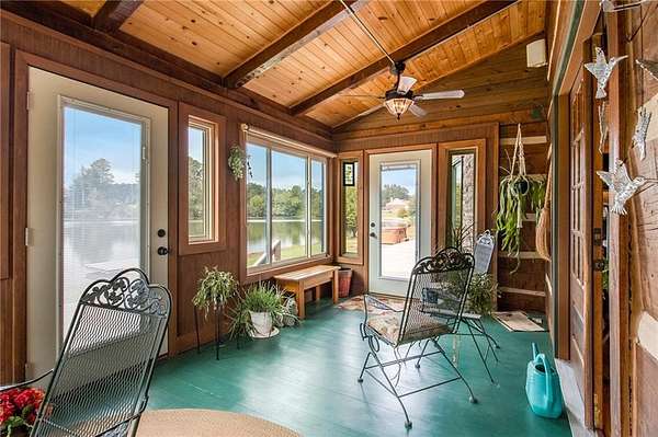 A Dutch-style barn offers a finished office, half bath, workshop, and full upper level ideal for an in-law suite or guest space. Additional detached garages provide storage for vehicles, RVs, and boats. Surrounded by horse farms and wildlife and just 2 miles from Hard Labor Creek State Park with championship golf and 24 miles of hiking and equestrian trails, this rare retreat delivers unmatched privacy and natural beauty.