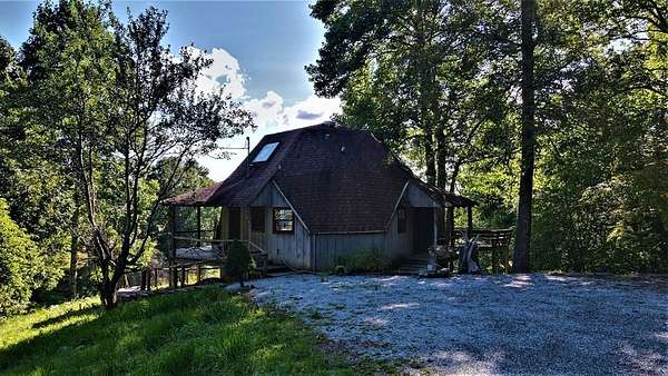 Beautiful UNRESTRICTED 34- acres of mixed wooded and pasture land with a geodesic dome home. One bedroom & 1.5 baths comes mostly furnished. A wrap around porch is wonderful to view the mountains in the distance and pasture area. A barn and outbuilding that could be a second home are on the larger parcel. Could make a wonderful development with several homesites, homestead or campground with an average slope of 27 percent. Cascading creek provides a border on one side. Property is located between Bear and Wolf Lakes making it ideal for the lake enthusiast and nature lover. Private well and part of the driveway are situated on adjacent USFS land. Seller is in the process of moving the driveway and abandoning the well. The parcel with house and 7.03 acres is being sold for $250K cash since it will not have a water source and the 26.85 acres can be conventional financing (AgSouth Farm Credit). Both parcels must be bought at same time. Mathis Cemetery shares road for cemetery access as shown on bottom of survey. Property is being sold "As Is".