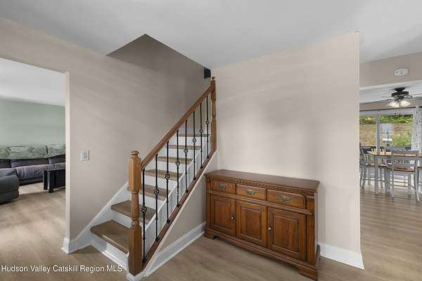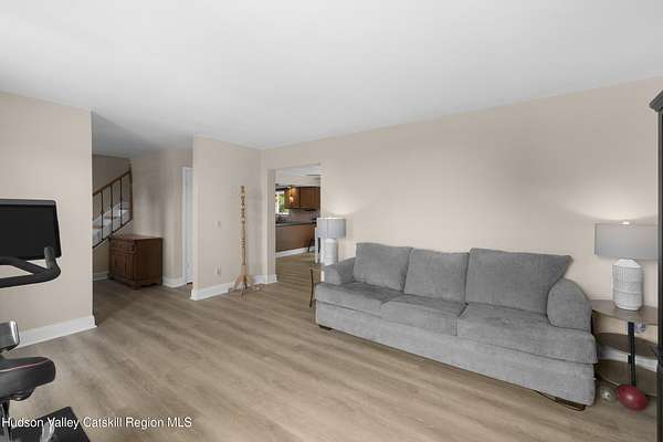 Motivated Seller! Set on just over 13 wooded acres with long-range eastern views toward Dutchess County, this spacious Colonial offers privacy, updates, and value in the New Paltz School District with the benefit of lower Esopus taxes: roof (2020), flooring, mechanical updates, main floor laundry, full basement storage/workshop. The home features over 2,600 sq ft of living space with 3 bedrooms and 2.5 baths. All bedrooms are located upstairs for separation and privacy. The main level includes a large eat-in kitchen, formal dining room, living room, and updated half bath with new luxury vinyl plank flooring throughout. The full basement with interior access provides great storage or workshop potential. Located on a shared driveway, the home feels private and peaceful yet is just minutes from New Paltz, Kingston, and the Hudson River. A rare opportunity to own over 13 acres with views, space, and smart upside in a desirable location.