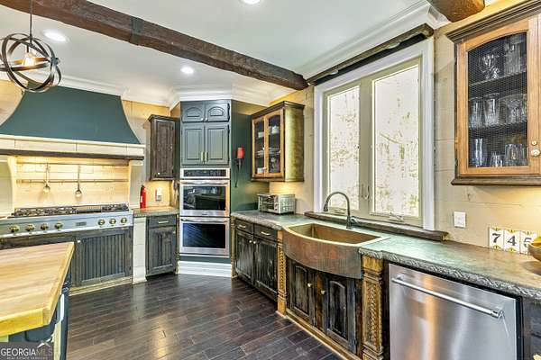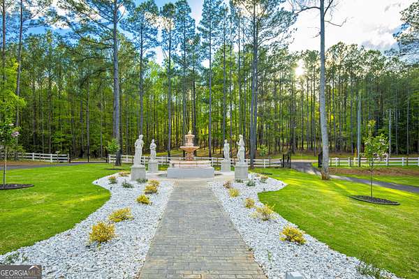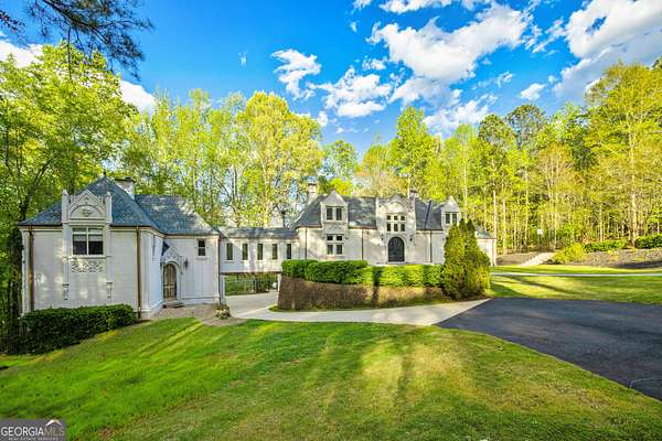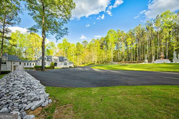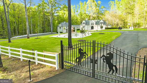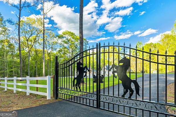 Don't miss your opportunity to own this exquisite, one of a kind, custom built home and experience the peace & privacy of this gated private estate with over 6 acres of meticulously maintained land. Stunning 6 bedroom and 5.5 bathroom home in a fantastic location close to town. Discover your perfect retreat in this beautifully designed home with all custom high end finishes. This spacious property offers a combination of classic elegance, luxury and comfort, combined with a fabulous space to entertain your family and friends. Step through grand double doors into a breathtaking two-story foyer with two staircases leading to the second level. Second level features a large guest or secondary primary suite with a clawfoot tub and an additional large bedroom. The home features the primary residence and a guest house with separate partially finished downstairs suite with a full bath and separate private entrance. It is connected to the main residence via an upstairs breezeway. The main level features the primary suite with 2 additional bedrooms, 2.5 bathrooms, a formal dining room, family room, laundry room, hardwood and bamboo floors, and many other countless upgrades throughout, including high ceilings, detailed trim-work, cozy wood burning stove in the family room, gas fireplace in the primary, marble floors in the foyer, and beautiful crown molding. The primary suite on the main level boasts gorgeous hardwood floors, beautifully designed master bath with a large round jacuzzi tub, his and hers sinks, two closets, and separate spa like shower. Chef-inspired kitchen opens to the dining room, complete with stone countertops, top of the line appliances, pizza oven, large kitchen island, custom solid wood freshly stained cabinets, and new dark bamboo floors. Lower level features additional master suite and open concept family entertaining area with a large wood burning fireplace. Additional spaces include oversized 2 car garage with space for exercise equipment and guest house lower level apartment with potential to create an income producing airbnb. Exceptional outdoor area includes main level porch, beautifully designed courtyard with custom fountain, oversized chessboard, basketball court, saltwater pool, large patio, and a cozy greenhouse sunroom. Beautiful creek and walking trails with picnic/camping area at the back of the property. This luxurious custom built home is a dream come true!
