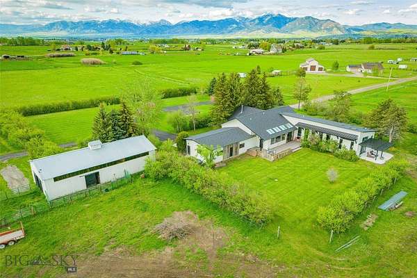 Dream Home with Breathtaking Views & Designer Touches. Welcome to your mountain-modern retreat! This stunning, fully remodeled home blends rustic charm with elegant finishes in every corner. Step inside to discover a spacious open floor plan flooded with natural light from walls of windows. The heart of the home is a chef's kitchen designed to impress-with top-of-the-line appliances, custom cabinetry, a generous island, & plenty of built-in storage for a clean, effortless look. Whether you're entertaining guests or enjoying a cozy night in, the south facing wall of windows will grace you with a stunning view of the Spanish Peaks making this space perfect for every occasion. Rustic wood beams, high-end finishes, & thoughtful details throughout create a warm inviting ambiance. The oversized fireplace with stone hearth in the living room beckons for you to sit & warm yourself while enjoying a cocktail made at the wet bar. Some additional interior features include all en-suite bedrooms, basement theatre room & gym space. Multiple decks & outdoor living spaces, complete with hot tub, offer the ideal spots to take in the sunrise, host gatherings, or simply relax & enjoy the views. The yard is surrounded by hedges for privacy, a mature lawn, with towering pines that create an alpine feel. The sprinkler system was installed last fall to allow for any further landscaping you could dream up. This property has been meticulously maintained as horse pasture-sprayed annually & carefully under-grazed to preserve its health & productivity, and additional acreage could be negotiable. It's ready for your livestock, with a versatile barn already designed with horse stalls in the back & a workshop up front. Whether you're an equestrian, hobby farmer, or just seeking wide-open space, the possibilities here are endless. With no covenants, no HOA, & no subdivision restrictions, you're free to reimagine the property entirely to suit your vision. This home is a rare find-move-in ready, beautifully finished & designed for comfort & style, all within 10 minutes of downtown Bozeman. Don't miss your chance to own a one-of-a-kind property that truly has it all!