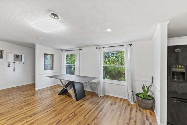 Relax on the covered front porch with morning coffee, or explore your wooded backyard oasis that's full of natural privacy and abundant wildlife. With over 5 acres of level and wooded land, there's plenty of room for gardening, outdoor hobbies, or even a small hobby farm.
