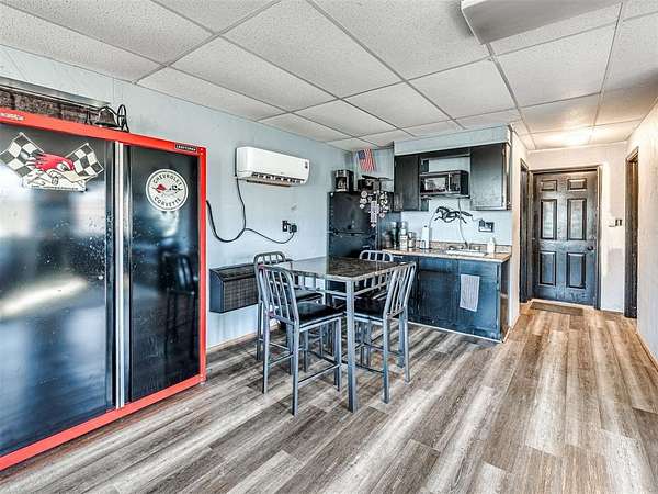 The property also includes a separate 2,400 sq ft shop with three bay door openings plus a single-car garage door. Attached to the shop is a 600 sq ft living quarters complete with heat and air, including a wall unit and newer mini-split system, a full bathroom, separate utility room with walk-in closet, small dining area, and an open floor plan. The shop space is wired for 220, ideal for equipment, hobbies, or business use.
