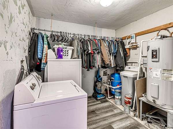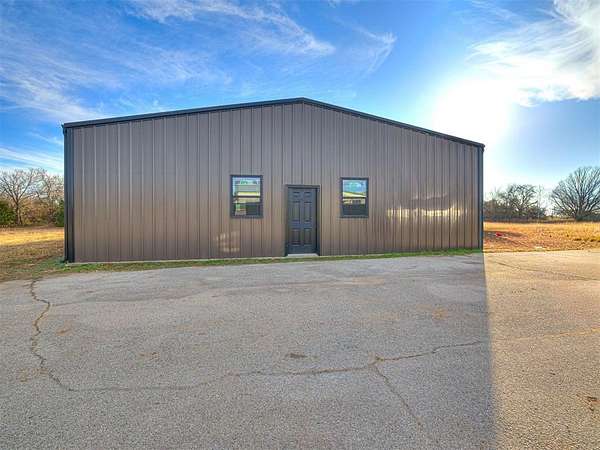 Brand new construction with endless opportunity on 5 beautiful acres just 10 minutes from Lake Thunderbird. This 40' x 52' barndominium sits on a fresh slab with a new metal frame, metal exterior, roof, and gutters already in place, making it ready for your custom build-out. Plumbing is roughed in for two bathrooms with dual sinks, a kitchen, and a utility room, giving you a strong head start on creating your dream space. A barn door opening has already been started, offering a notable design feature and flexible layout options.