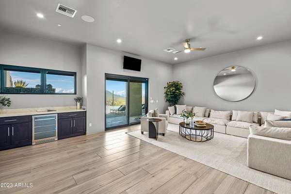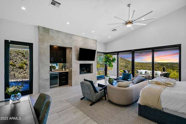 New co-ownership opportunity: Own 1/8 of this turnkey home, professionally managed by Pacaso. Soak up desert views in this gated mountaintop retreat with a wrap-around balcony & walls of glass. Sleek, contemporary architecture creates seamless indoor-outdoor living, starting in the spacious great room. The gourmet kitchen has stainless steel appliances & a quartz waterfall island. The dining table & executive bar make entertaining easy, as does the cooled whiskey and wine room. The primary suite features a fireplace, wine fridge & doors to the patio. The en suite bathroom has a soaking tub, tiled shower, dual sinks & a makeup vanity. An office & game room opens to the infinity pool & patio. The home, which includes an elevator, comes fully furnished & professionally decorated.