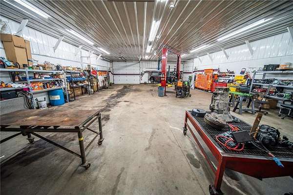 The main building has a front office entrance with 4 separate offices, a 38x41 attached shop, and a second 37x57 attached shop -- all in one. The second building is wide open for storage, equipment, mechanical, construction, etc.