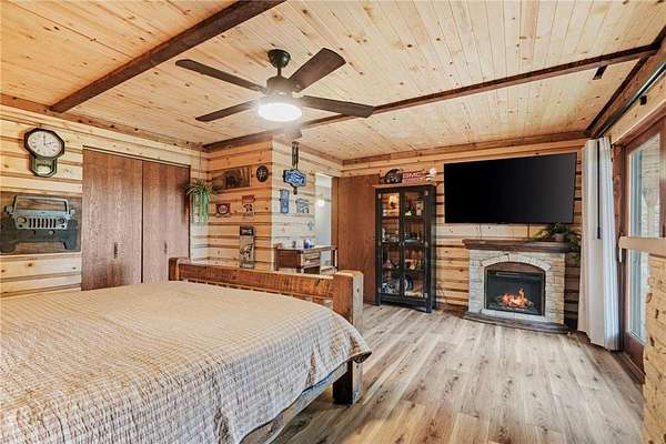 The finished walkout lower level offers daylight windows and a walk-out exit give you fresh air and abundant light, creating a perfect space for a family room, game room, guest quarters or hobby studio. The back room could easily be converted back into a Mother In law kitchen. The basement is fully finished and adds substantial usable space to this home. The two-car attached garage has been converted into a car enthusiast's dream and the property's size and design lend themselves to outdoor pursuits -- whether that's gardening, nature watching, relaxing on the deck with a morning coffee, or simply enjoying the privacy that 5+ acres affords.