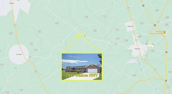 From Wallace take Wallace Highway West for 6 miles. House is on left.