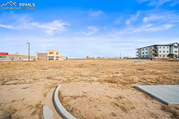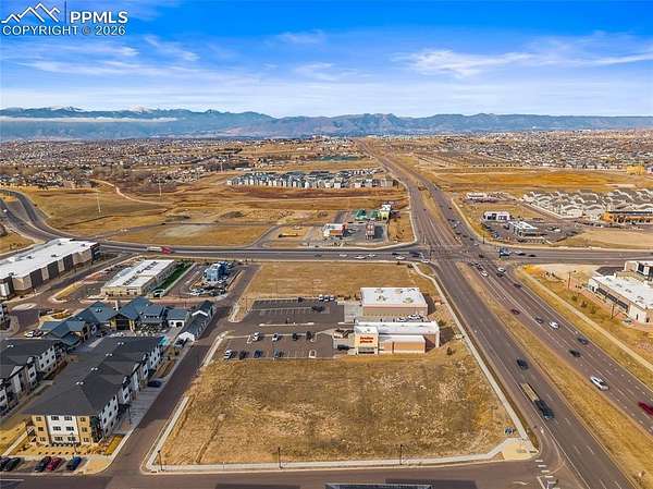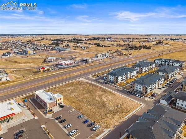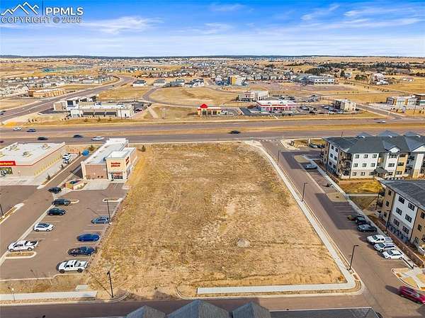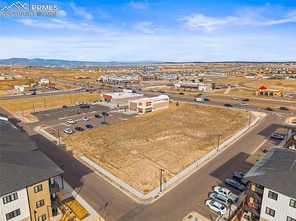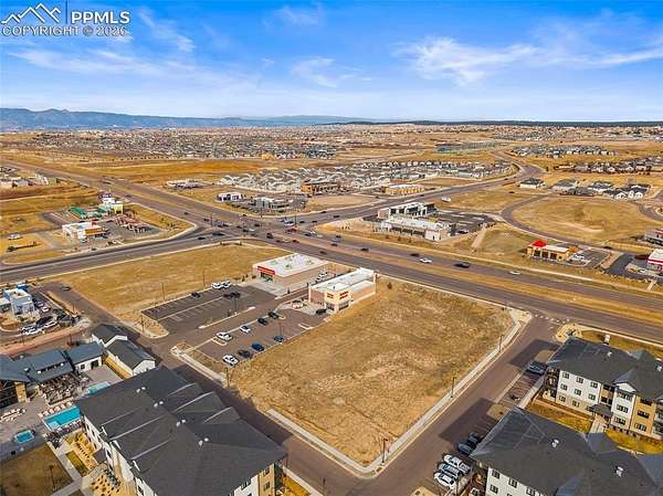 Exceptional commercial land opportunity in a rapidly expanding growth corridor between Colorado Springs and Peyton. This 1.58-acre pad site offers prime location, flexible uses, and entry to the market while it continues to grow. Perfect for a quick-service restaurant, but also presenting opportunities for developers, investors and franchisees in a variety of industries, the site offers high vehicular traffic along a major commuting corridor, growing population with strong household incomes, and ample square footage to drive income, along with ample parking. A nearly 400-unit apartment complex is adjacent to the site, and along with close proximity to Sterling Ranch, Banning Lews, Wolf Ranch and Cordera, the site is within easy access to many popular neighborhoods in the northeast corridor. Utilities are at the property line, and a centralized detention pond is already in place. Part of the MW Retail BID, everything is in place to support this vacant land as a solid generator of revenue and growth.